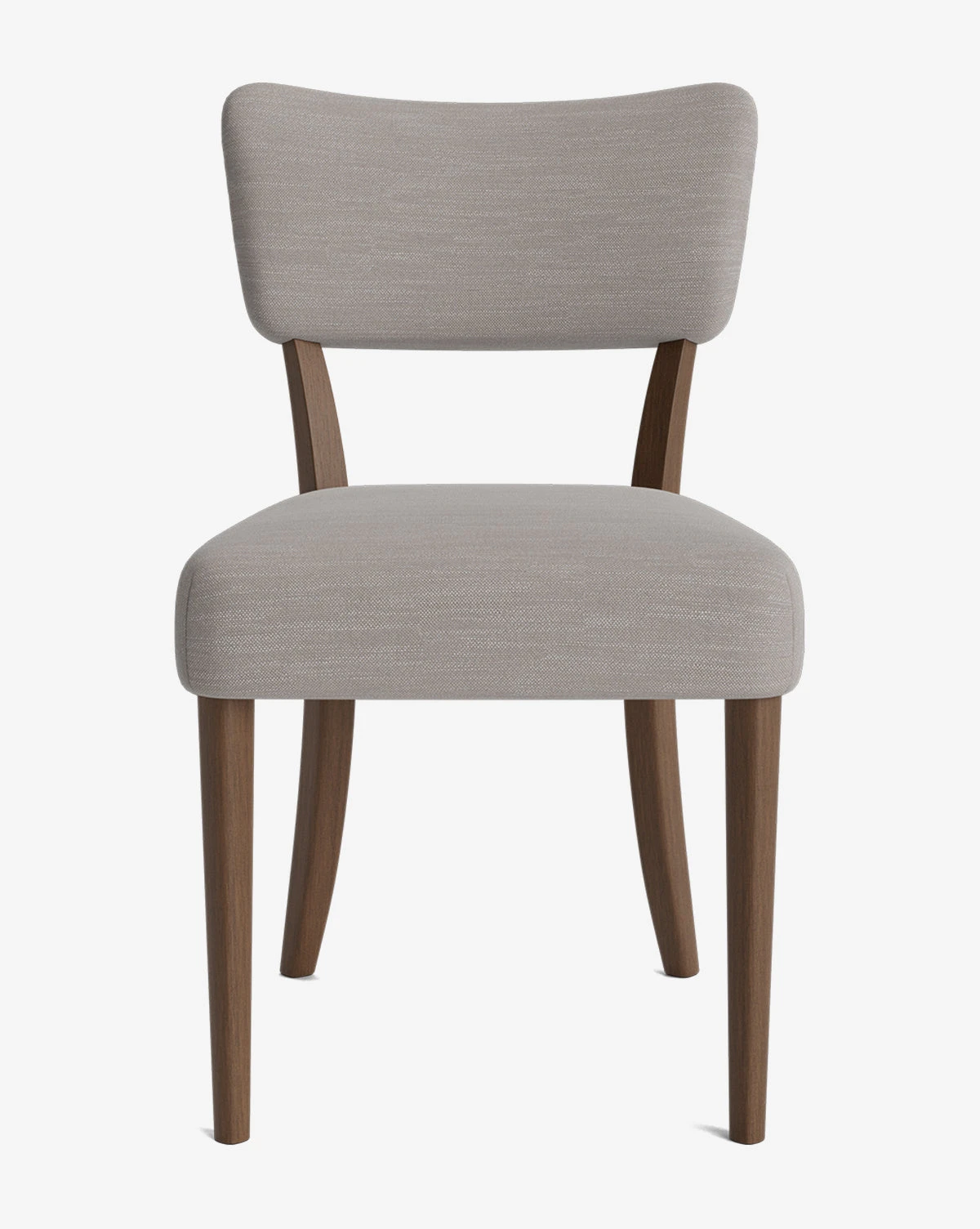 Vintage inspired and artfully designed, our Etienne Dining Chair is a timeless staple for your dining room styling. With a classic form, the chair features tapered square legs and a soft curve on the top and bottom edge of the back. The chestnut wood finish offers a rich warmth and the plush seat cushion caters to comfort. Customizable in a wide array of fabrics, you can make this made-to-order piece entirely your own.