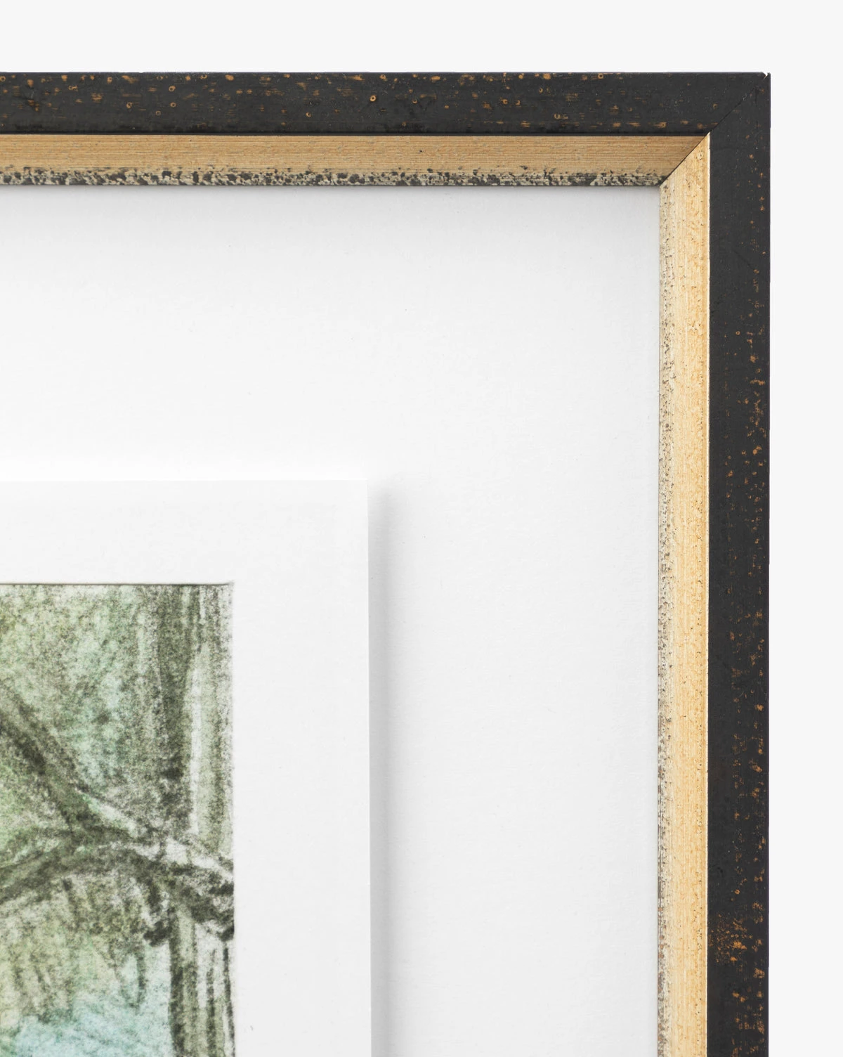 With expressive linework in each of its four pieces, Eucalyptus Windows has a delicate yet inviting feel. The vibrant artwork depicts four lush trees and is presented as a giclee print on paper within a distressed black and gold frame.
