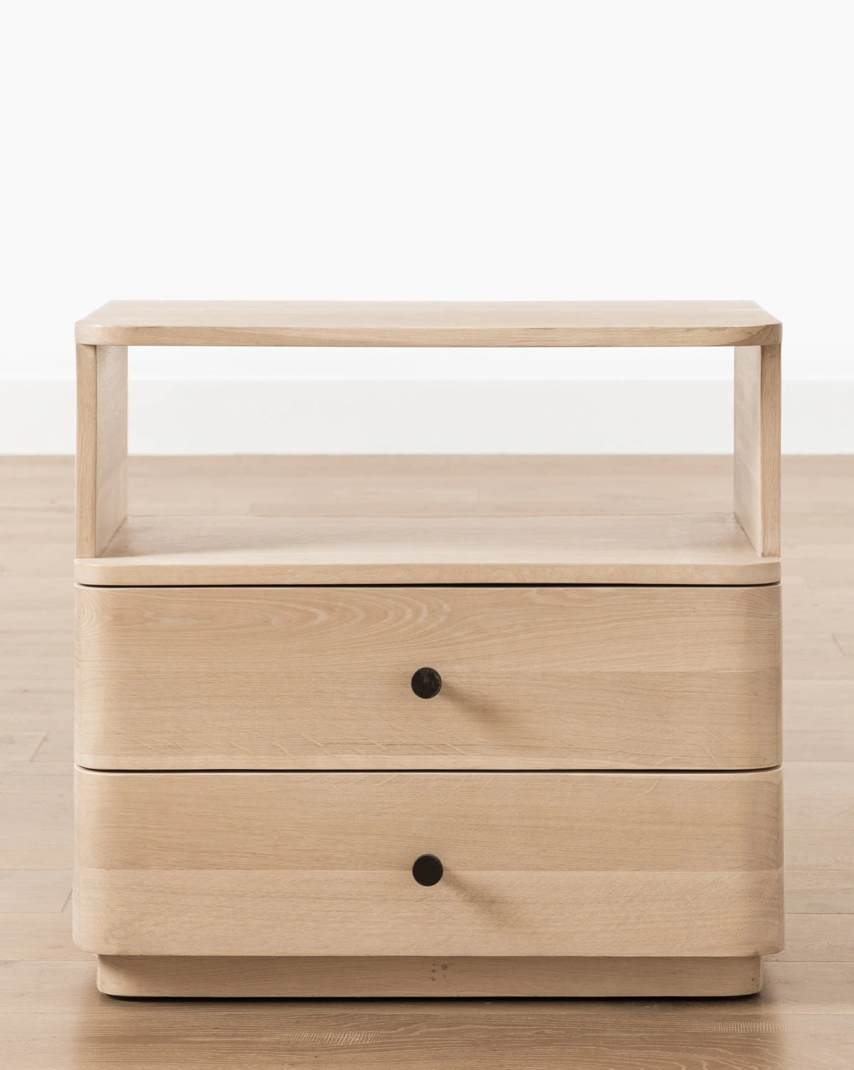 Inspired by traditional cabinetry and given a timeless update, the Longhurst Nightstand draws the eye with its smooth, curved drawer fronts. Crafted from Oak wood, this casually approachable design is finished with simple round pulls, lending a unique moment of visual contrast.