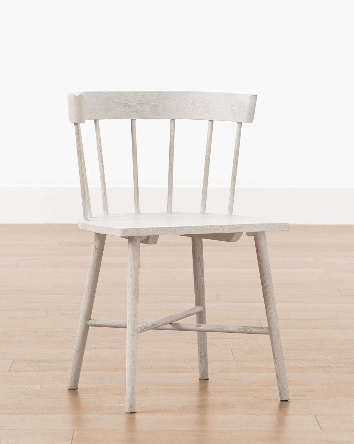 When we designed the Reeves White Chair, we wanted to mesh contemporary and traditional styles seamlessly, and we think we did just that! From the spindles to the architectural base finished off with tapered legs, this chair redefines classic design through its thoughtful attention to detail. Crafted from solid, kiln-dried oak and finished in a modern white hue, this chair adds dimension to your dining room with ease.