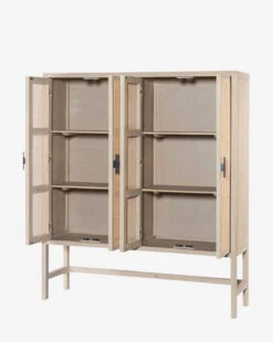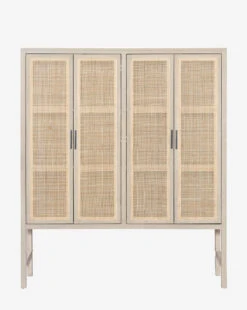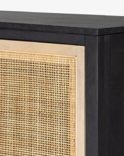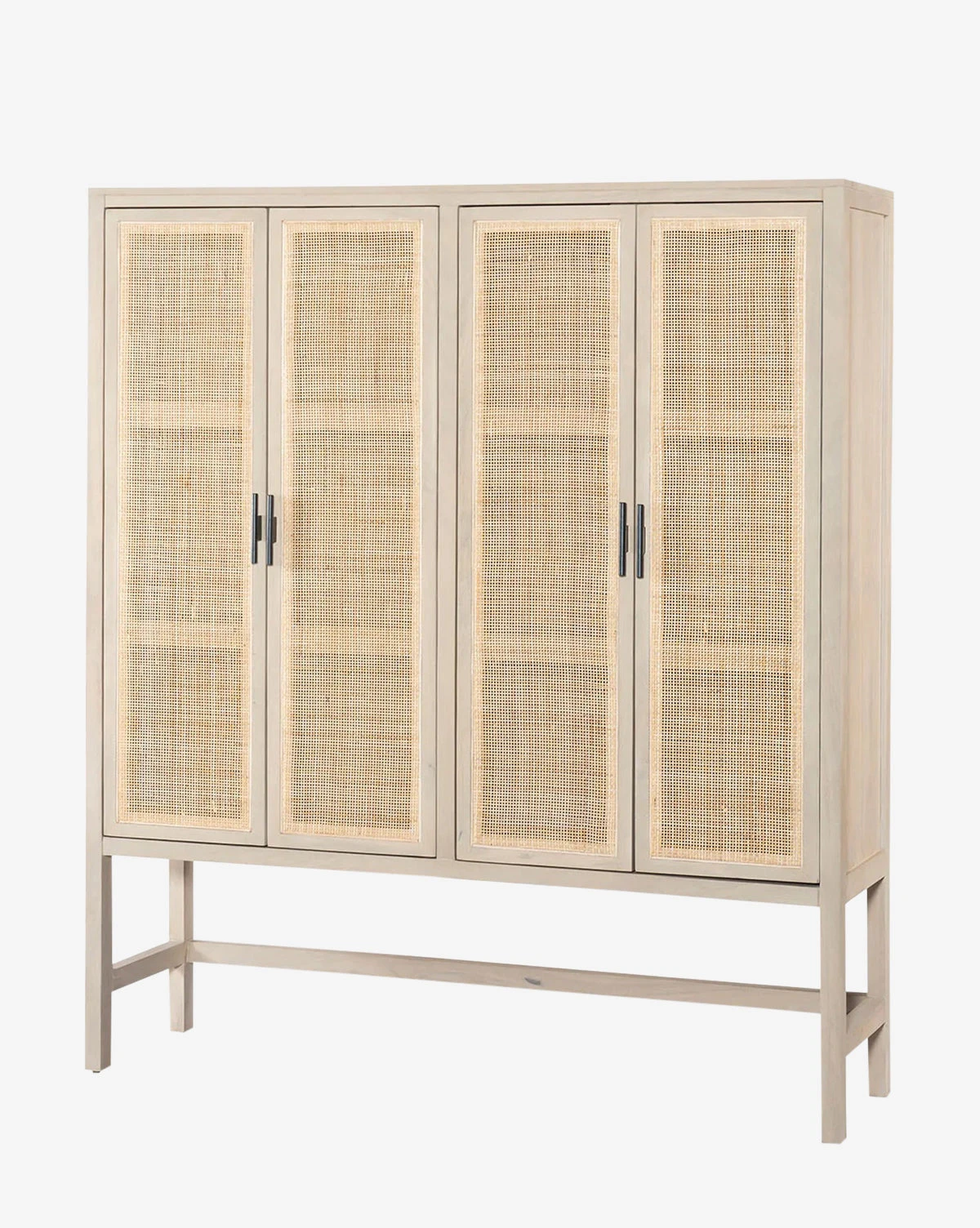 Carefully crafted in two unique colorways, the Fallon Cabinet makes a statement with its high-style form. Acacia wood shelving creates plenty of storage, while mango framed doors, woven with natural cane add an eye-catching piece to your home design.