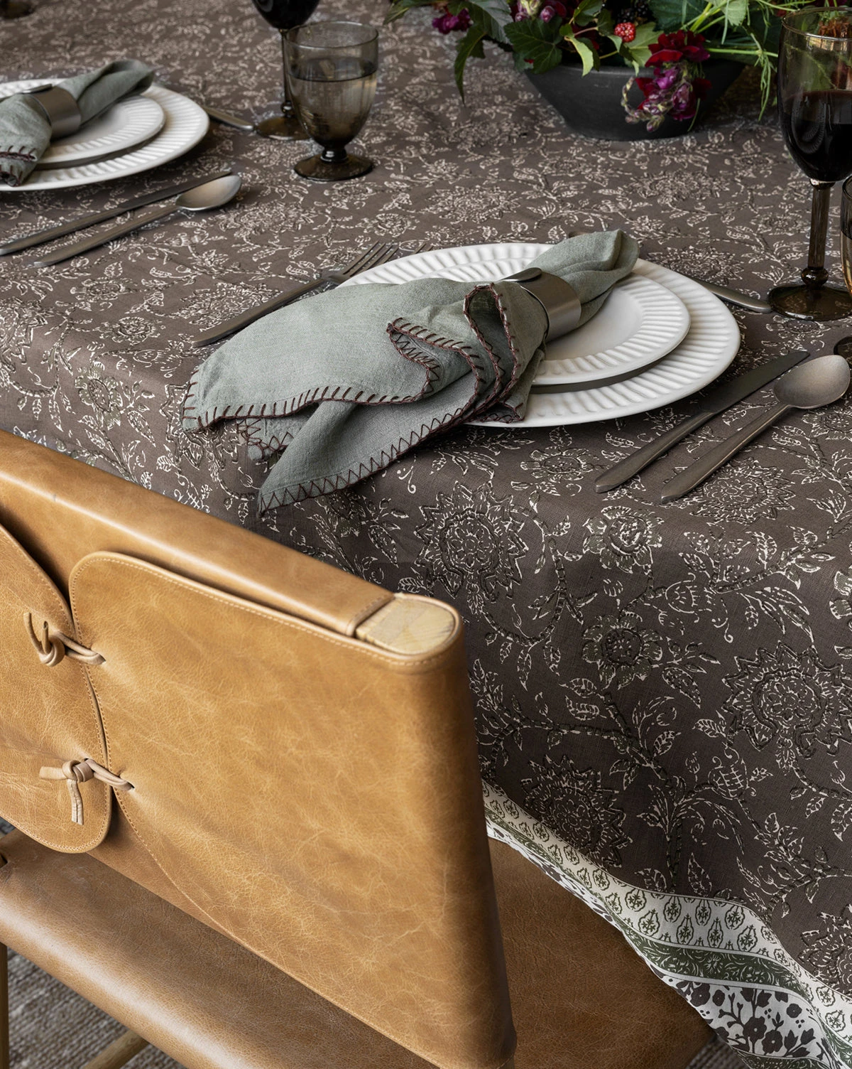 Screen printed with a classic motif and rich palette, the Fillmore Tablecloth is crafted from a linen-cotton blend that brings a delicate softness to your dining room. Its floral pattern and layers of detail bring a subtle elegance to your table styling.