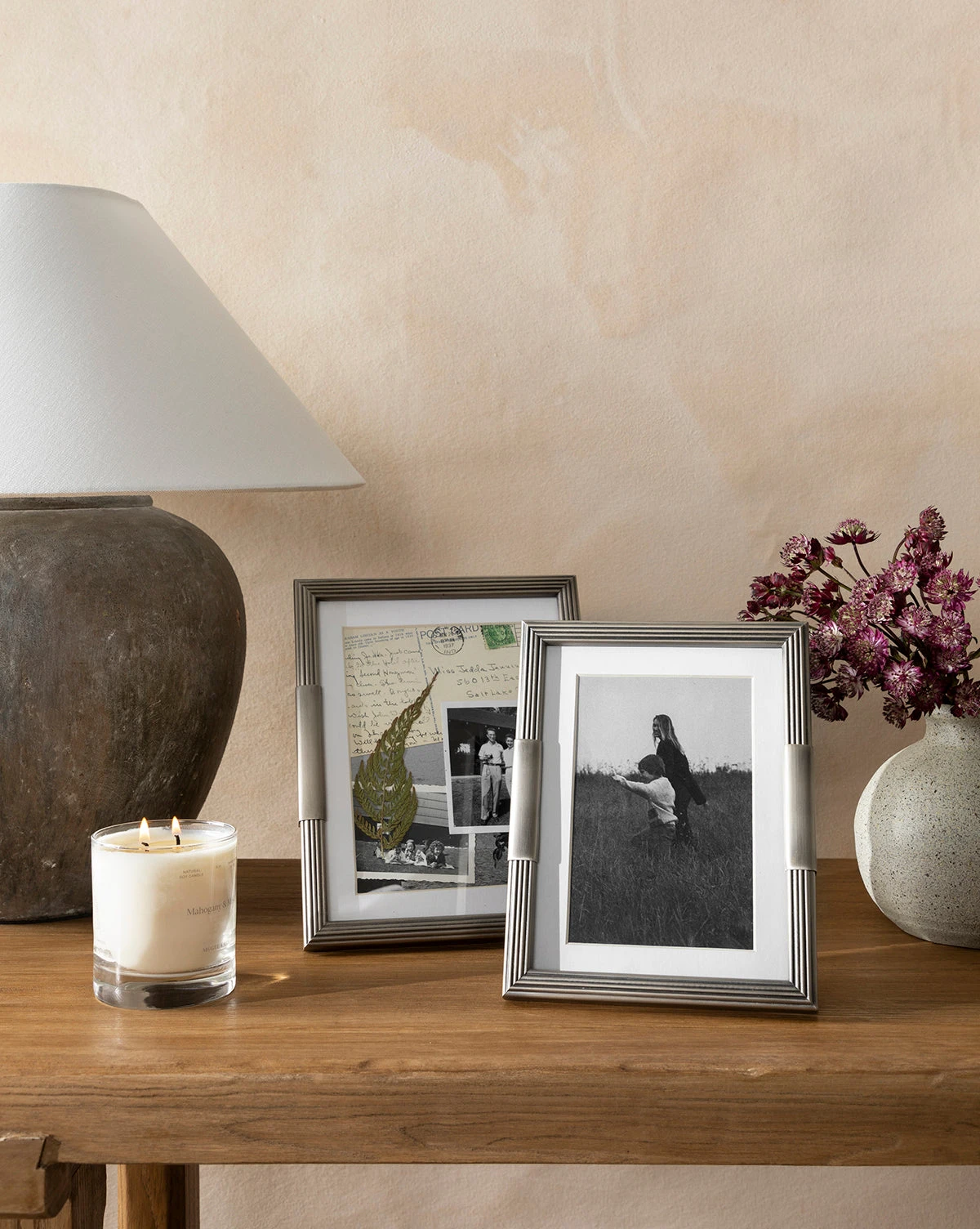 Subtle and refined, the Fluted Metal Frame keeps your memories encased in sophisticated style. With an antique pewter finish and horizontal fluting, its grooved design is the perfect finishing touch for your built-in or coffee table.