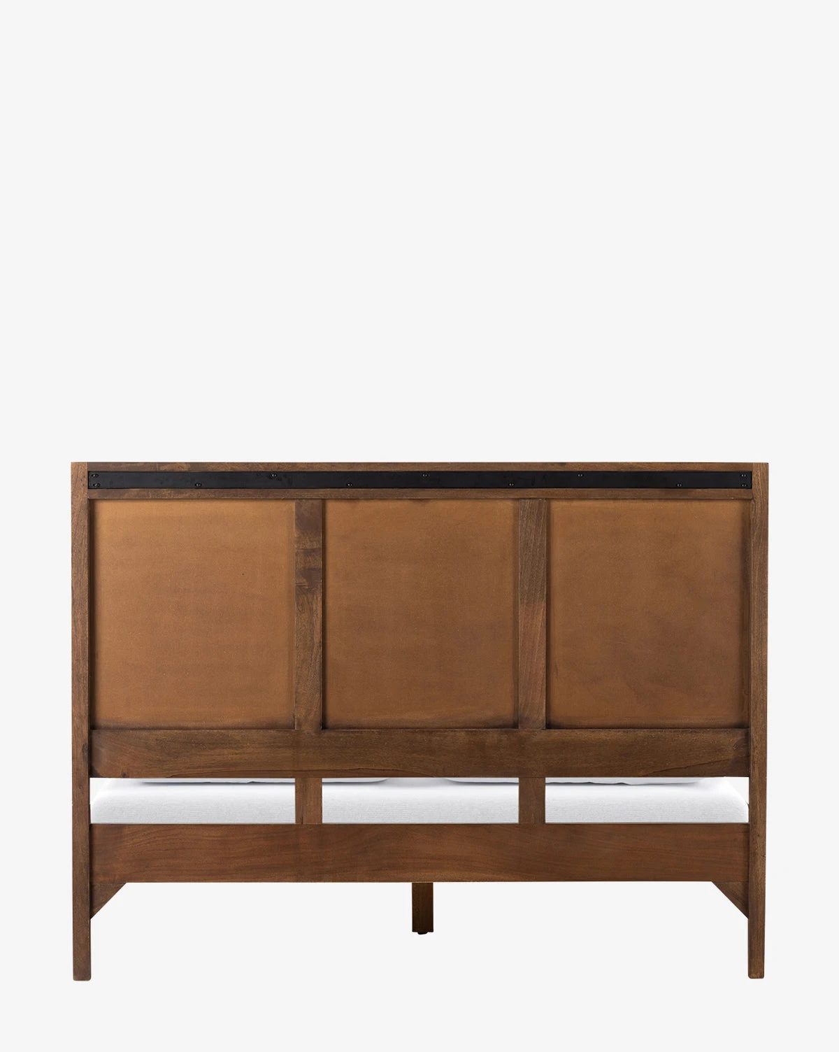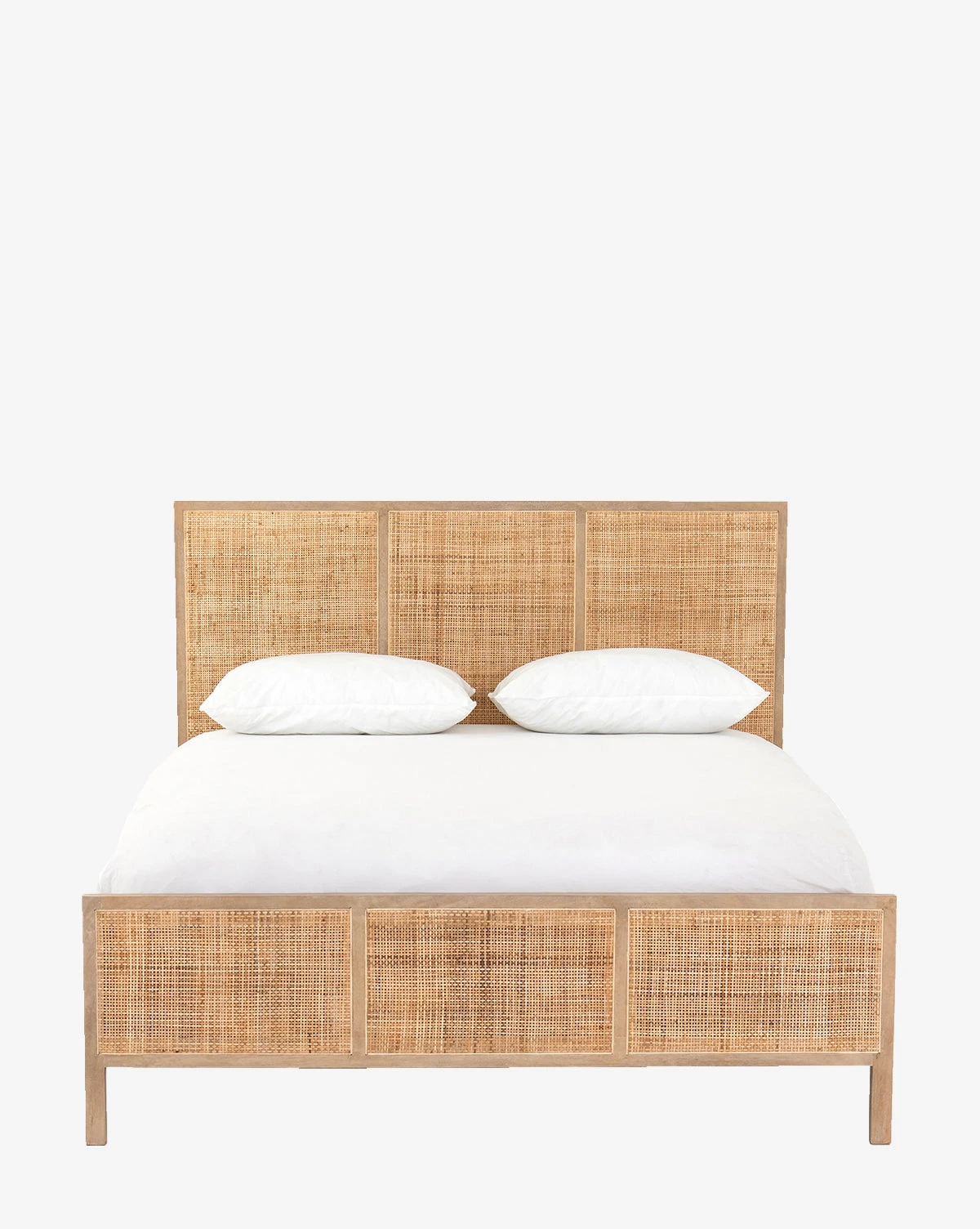Mixed materials create a natural, organic feel through the elegant craftsmanship of our Geddes Bed. Crafted entirely from natural materials, paneled head and foot boards feature woven cane insets, paired with either a modern black finish, or classic natural wash. In either colorway, this bed brings added dimension and streamlined, sophisticated design to your bedroom.