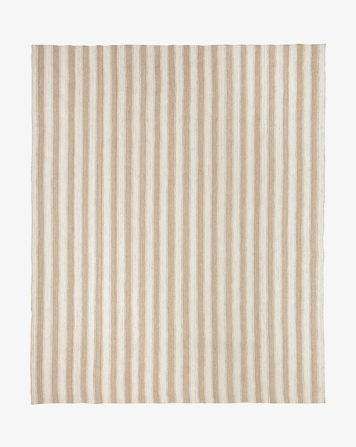 Entirely handwoven, the Goldie Handwoven Indoor/Outdoor Rug is soft underfoot with a durable construction of 100% PET. In a palette of tan and cream, its classic stripe pattern feels approachable and playful, and its color scheme is neutral and warm.
