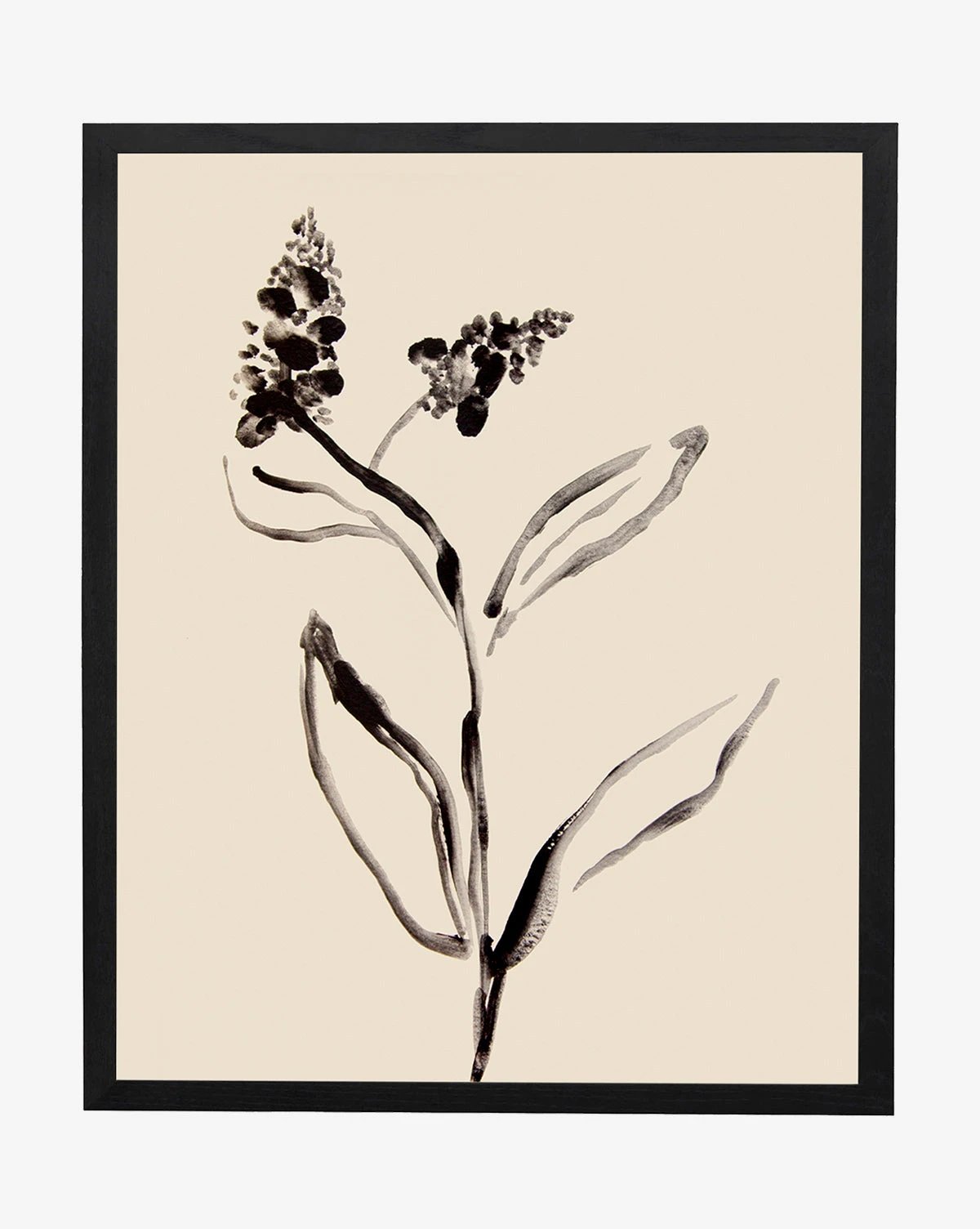 Stunning, artistic attention is given to the dramatic silhouette of the Grape Hyacinth. Painted in a deep black watercolor, this monochromatic piece is both minimal and profound, giving your walls a sophisticated, elegant focal point. Â