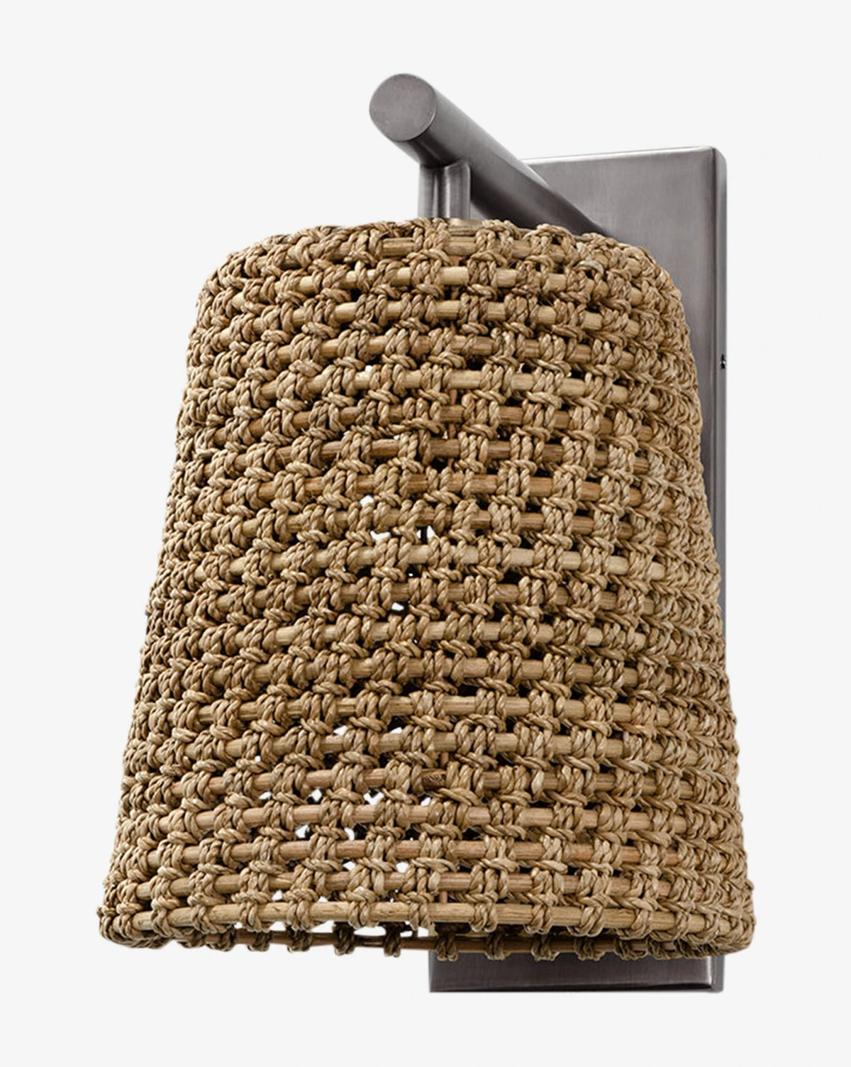 The Green Oaks Sconce is both elegant and alluring. This exquisitely woven fixture, with intricate rope available in multiple finishes, is a dynamic and sophisticated addition to your home. This sconce comes with a metal finished backplate, but professional installation is recommended.