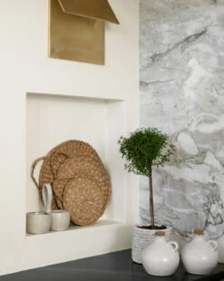 Hand-woven from bankuan grass, the Hand-Woven Trivets have an artisanal, organic feel that brings warmth and texture to your dining table or kitchen. With a simple round shape and intricately woven handles, the trivets are not only functional, but are a beautiful natural detail among your kitchen decor.