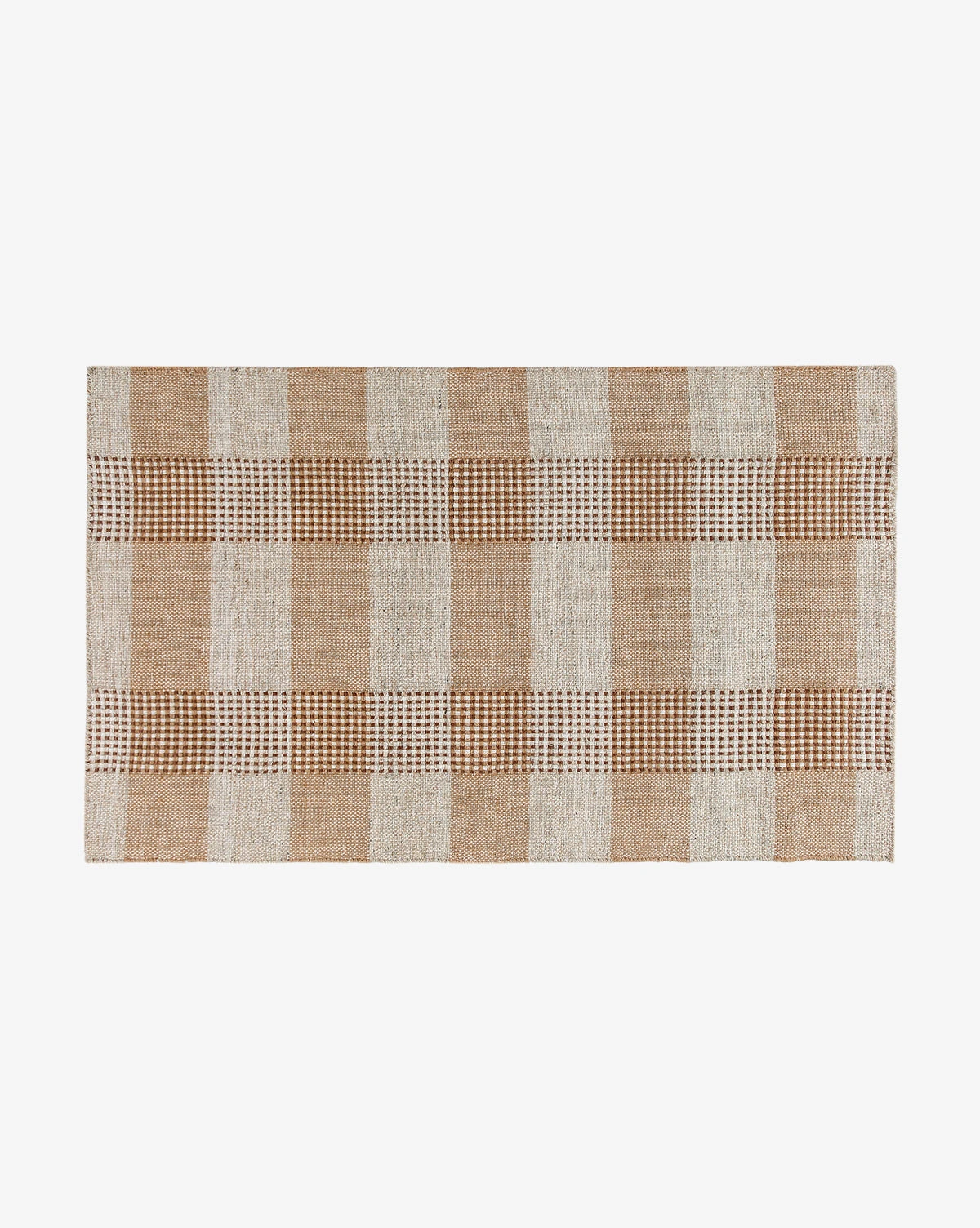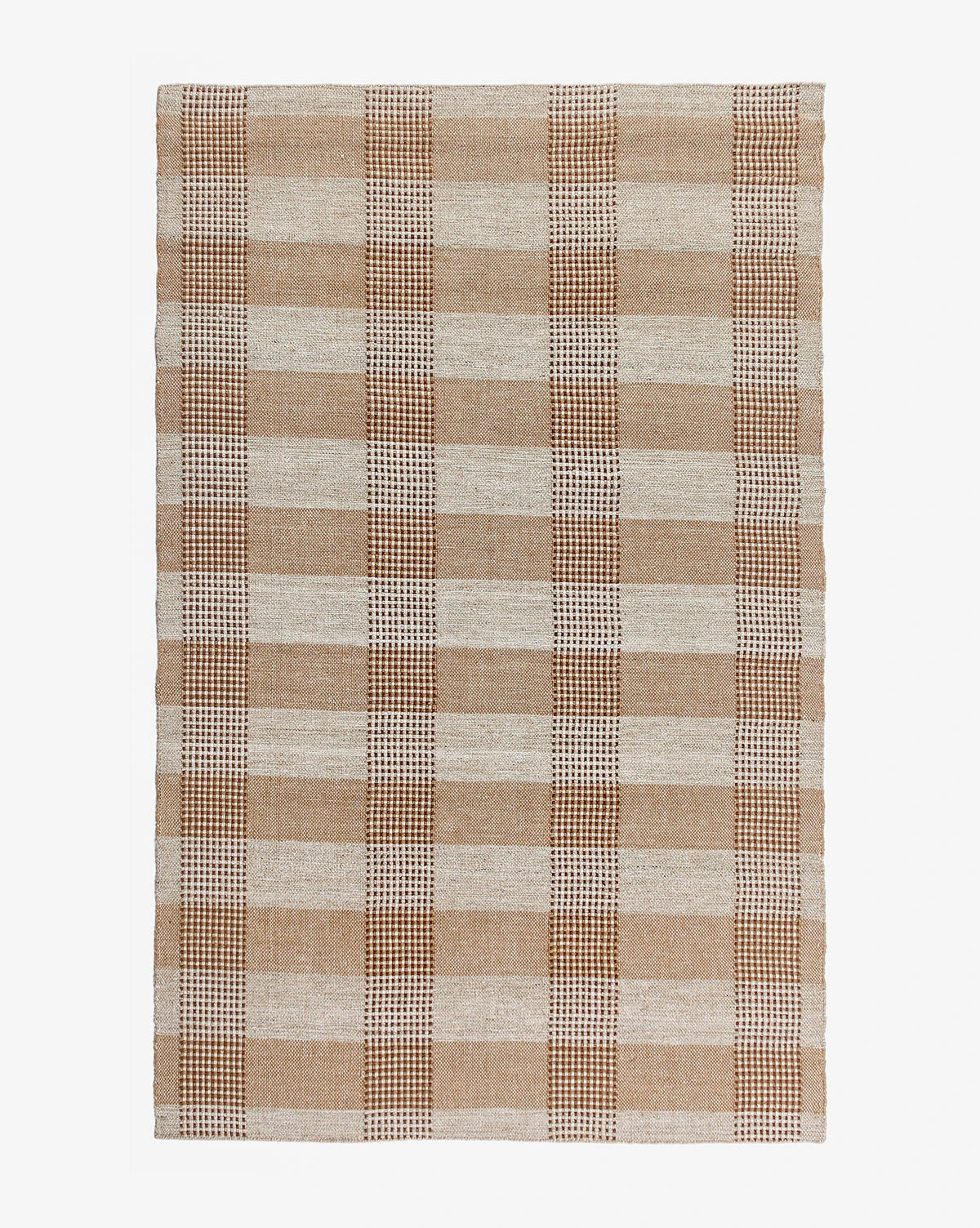 Intricately woven with tan, rust, and cream accents, our Hargrove Handwoven Indoor/Outdoor Rug features a timeless checker pattern. Its palette lends to versatility, while the texture and thoughtful design offer visual interest. Beautifully crafted with strong and durable PET fibers, it brings a layer of long-lasting style and comfort to high-traffic indoor or outdoor areas.