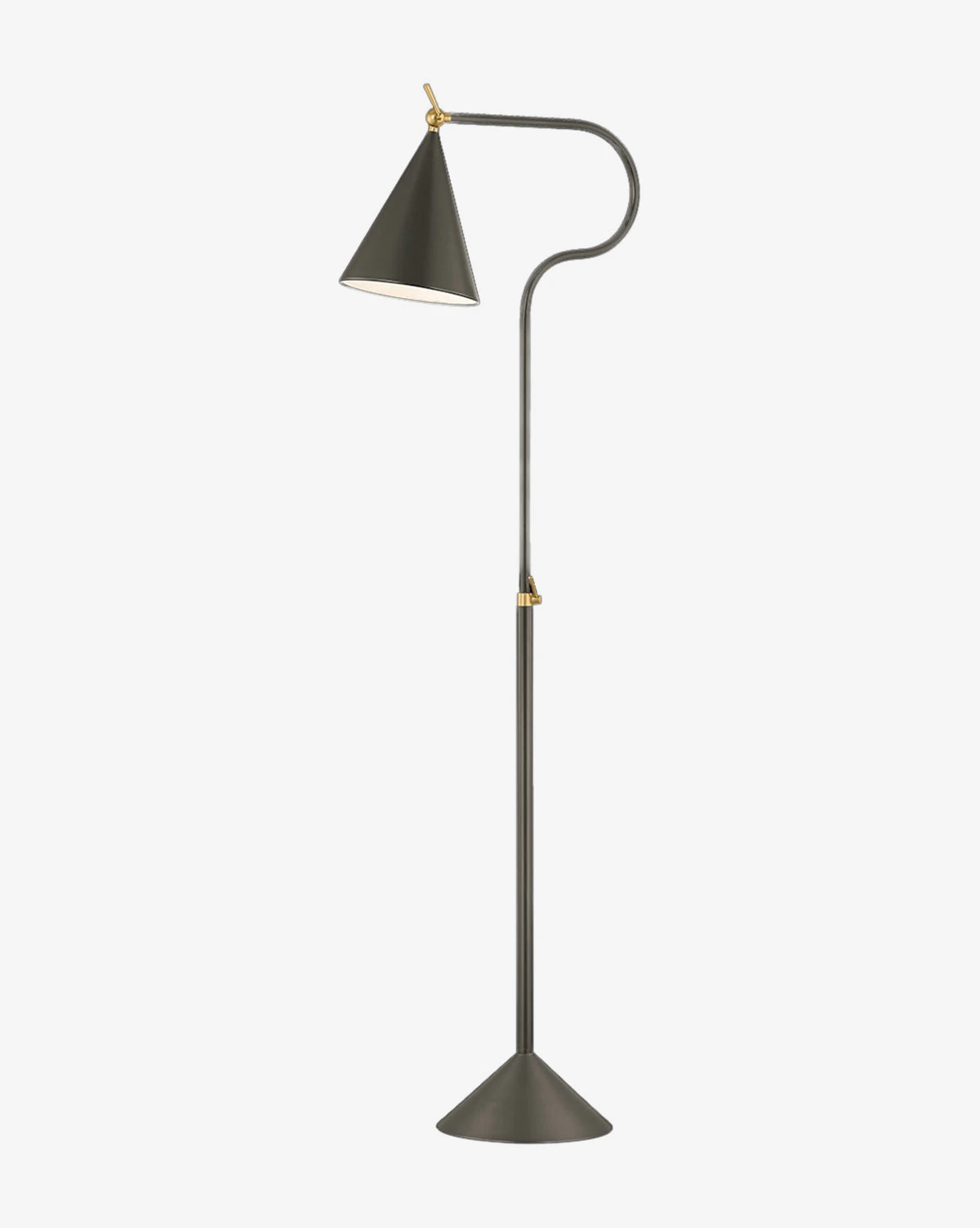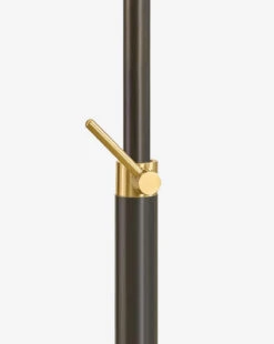 With a sleek steel frame in a true bronze finish, the Harriet Floor Lamp features aged brass clutch swivels for adjustable lighting. Its timeless design adds a refined, functional elegance to any space.