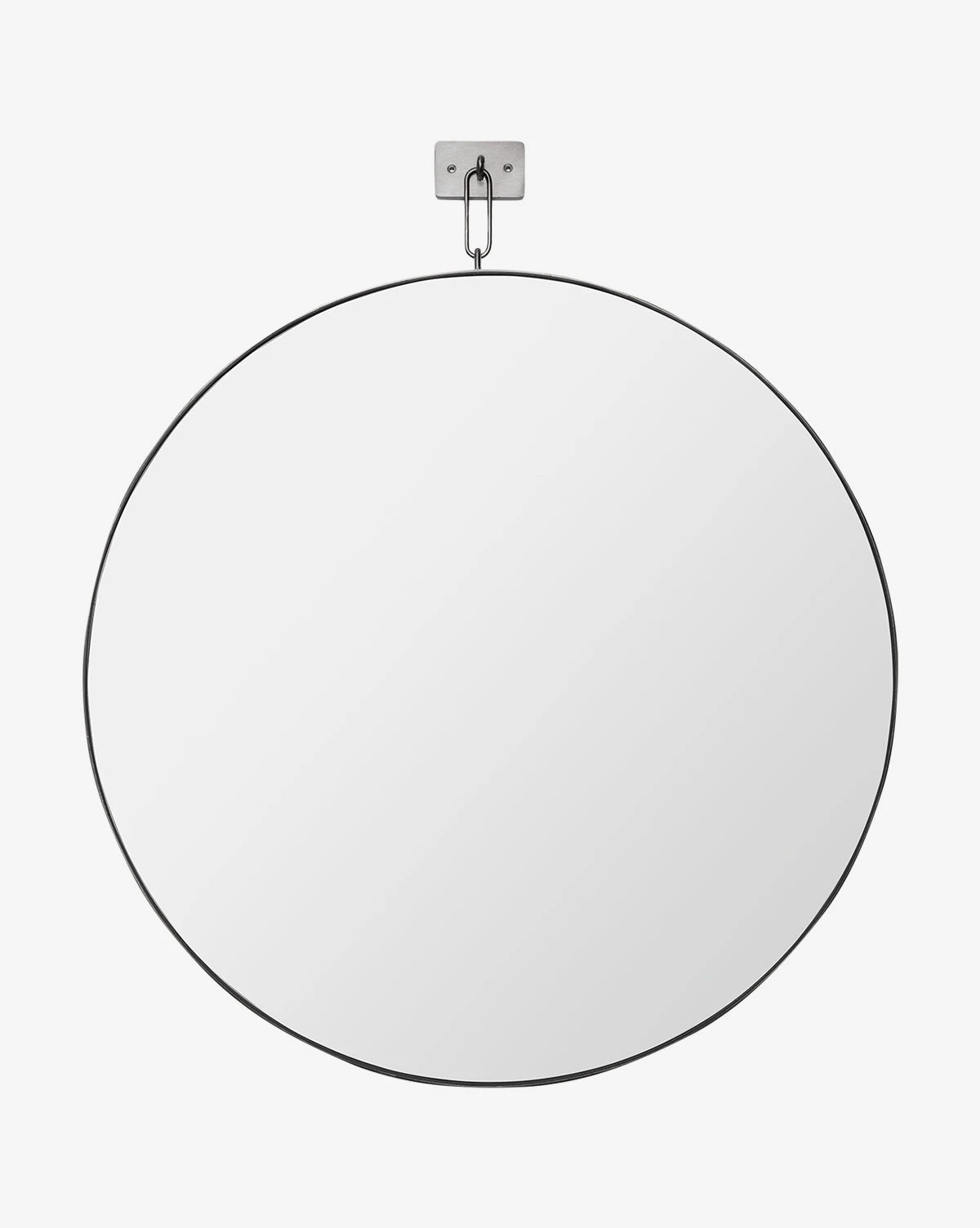 Sleek and approachable, the Haven Wall Mirror is crafted from stainless steel in two finishes. Its thin frame is supported by a metal mounting plate, giving a delicate, industrial tone to this modern mirror.