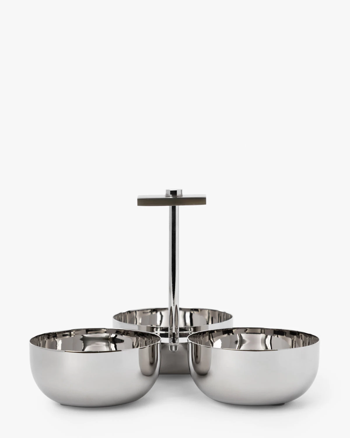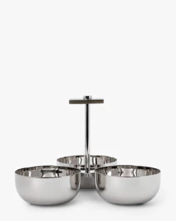 Add a touch of sleek refinement to your table settings with the Holland Condiment Set. Its three bowls are finished with a nickel polish and connected by a horn-crafted handle for easy transport and serving. Durable and stylish, it’s perfect for entertaining.