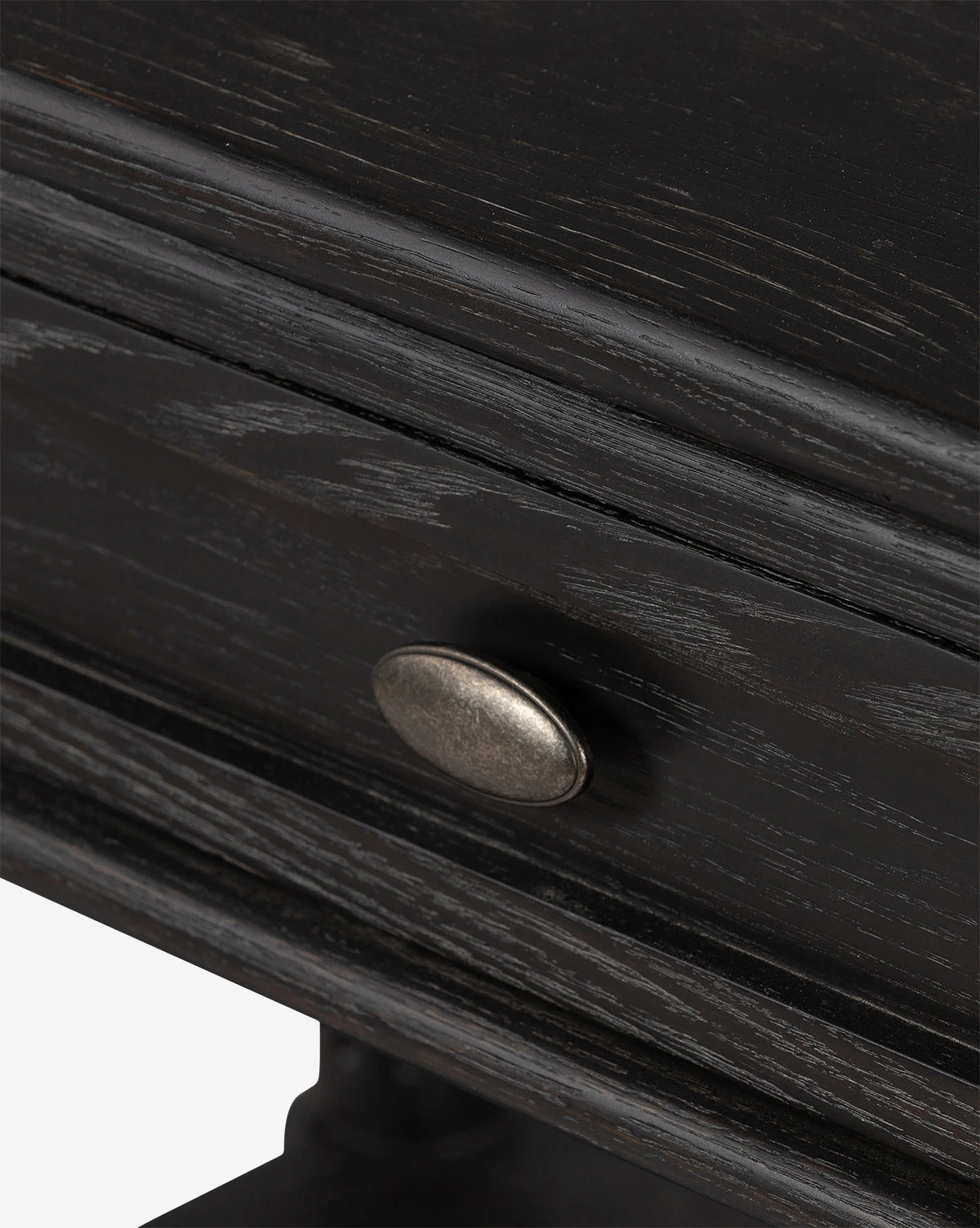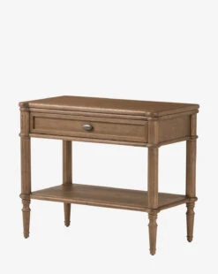 In an updated traditional design, the Humphrey Nightstand draws the eye with its spindle legs and warm finish. Crafted from oak, this approachable design is finished with an oval aged brass pull, lending an elegant detail to your bedroom styling.