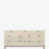 With a sophisticated, intricate design, our Huxton Dresser looks good from every angle. During the design process of this beauty, we knew we wanted to create a piece that was both functional and detailed. We chose an etched grid pattern for the front drawers to draw interest, then centered the brass pulls on the end of each drawer for function. Finished with a unique boxed leg detail, this dresser creates a light and airy moment in any bedroom, from traditional to modern.