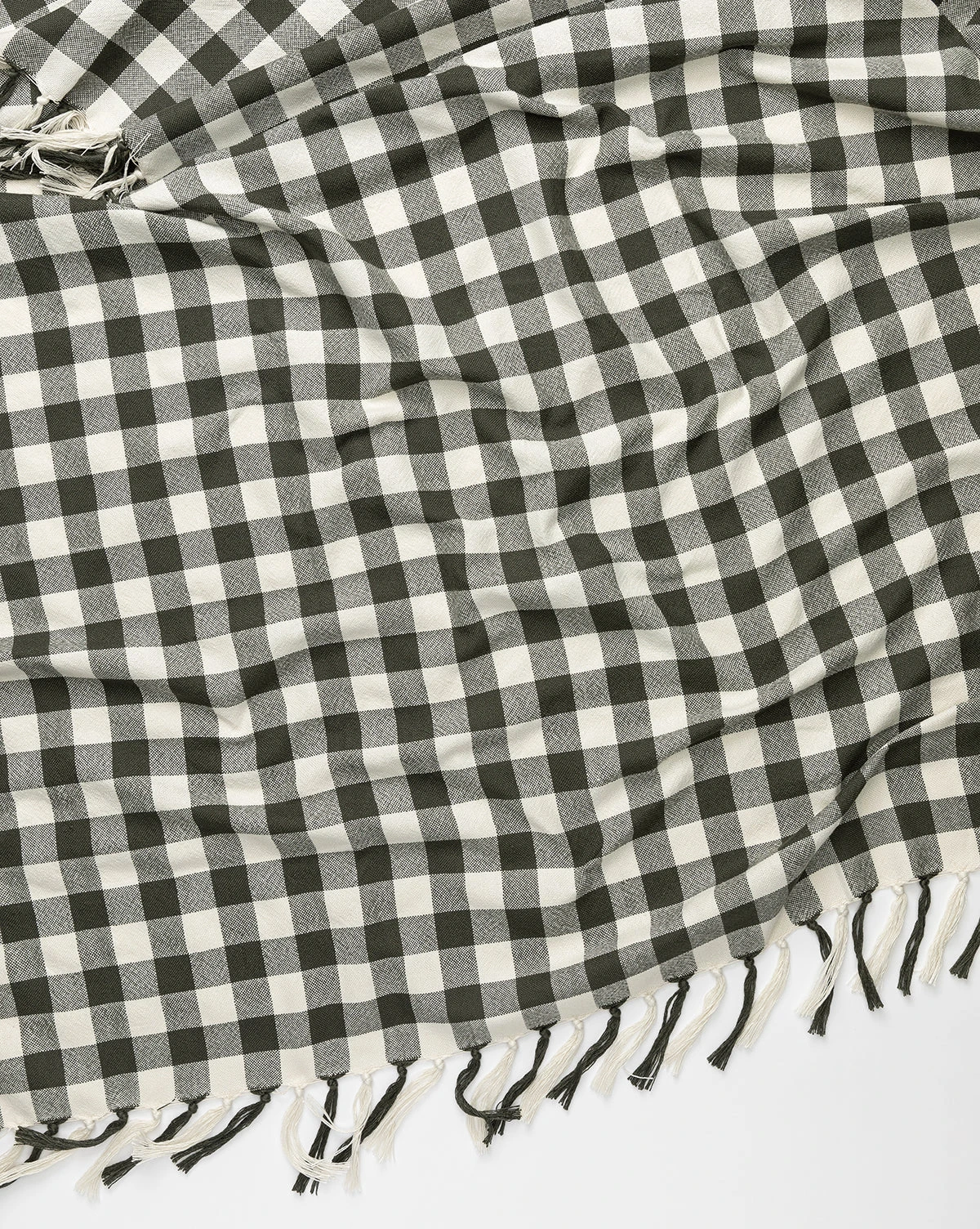 Handwoven with soft materials suitable for both indoor and outdoor use, the Ida Indoor/Outdoor Throw is luxurious and inviting. Its classic checkered pattern is simple yet sophisticated with a classic aesthetic. Finished with fringe, this throw is a beautiful addition to lounge chairs or sofas.
