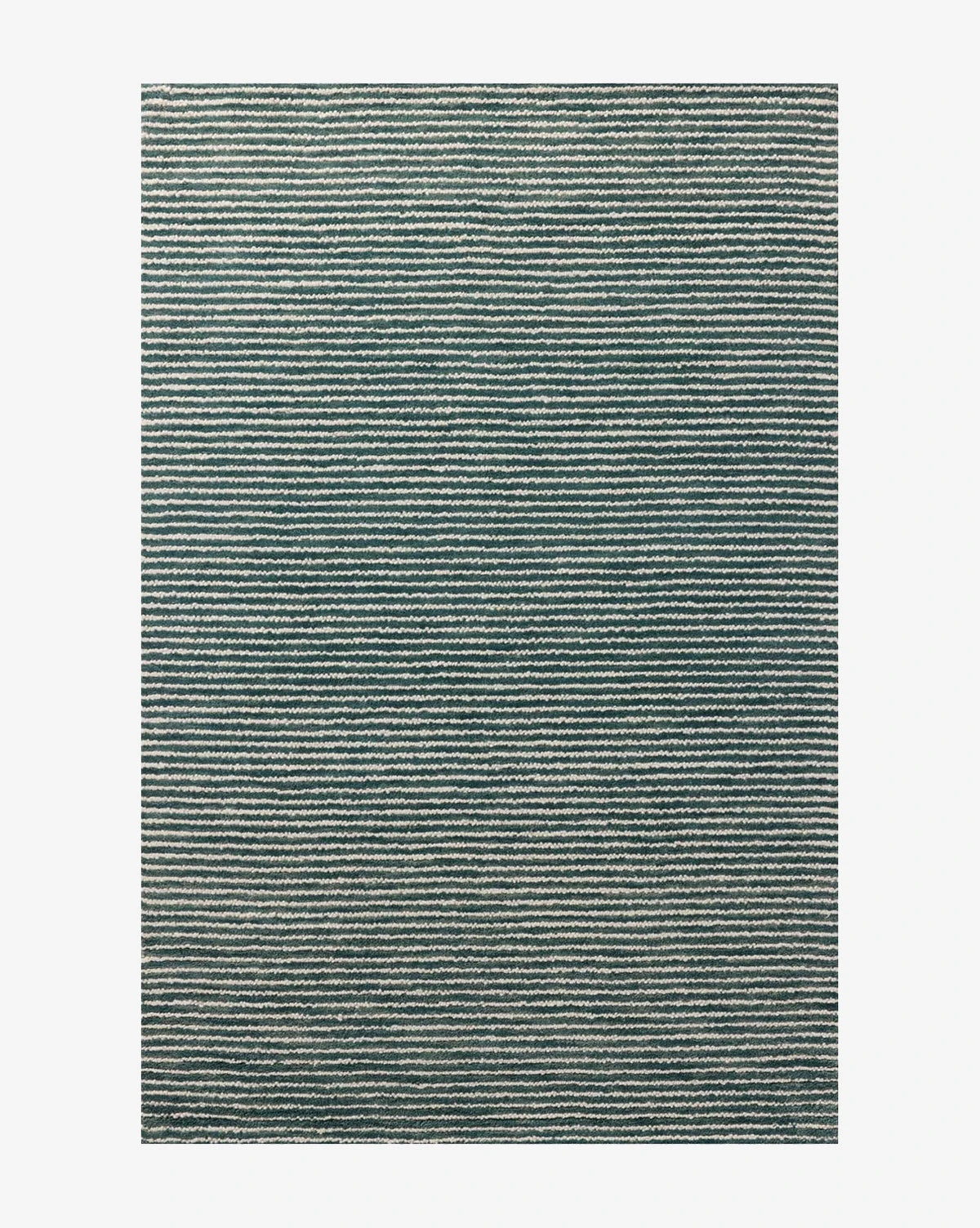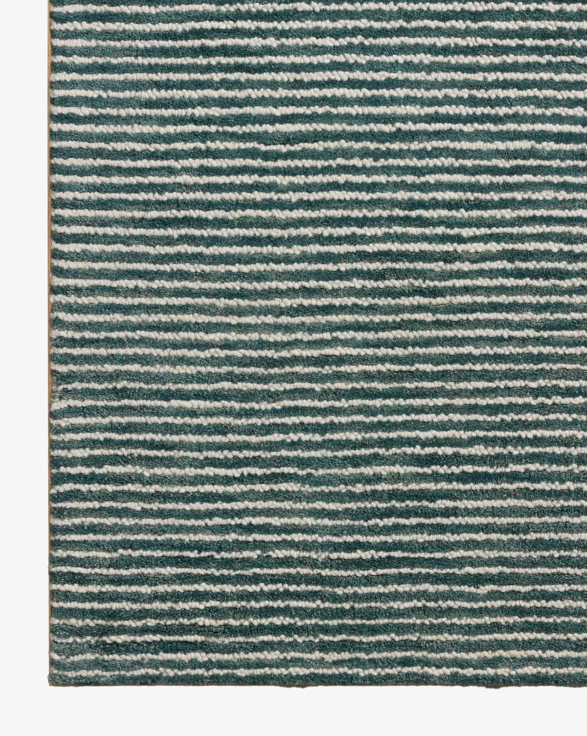Crafted from 100% wool, the Inara Ocean Hand-Tufted Wool Rug features soft blue and ivory stripes for a timeless, grounding feel. Its plush, hand-tufted construction adds warmth and texture to any space.