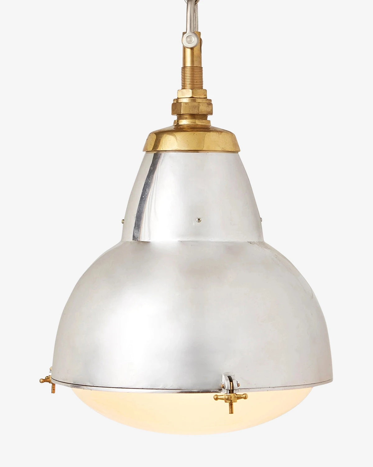 True to its name, the Industrial Pendant’s manufacturing roots also display a vintage-inspired aesthetic. Its brass, aluminum and steel metal mixing brings a polished and look wherever it’s hung.
