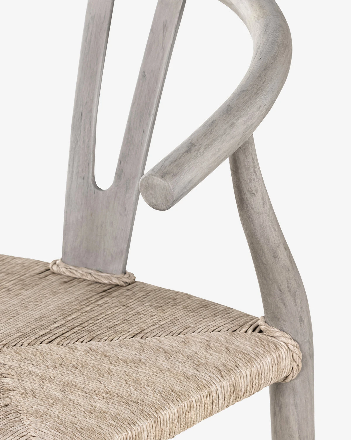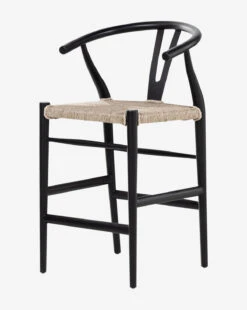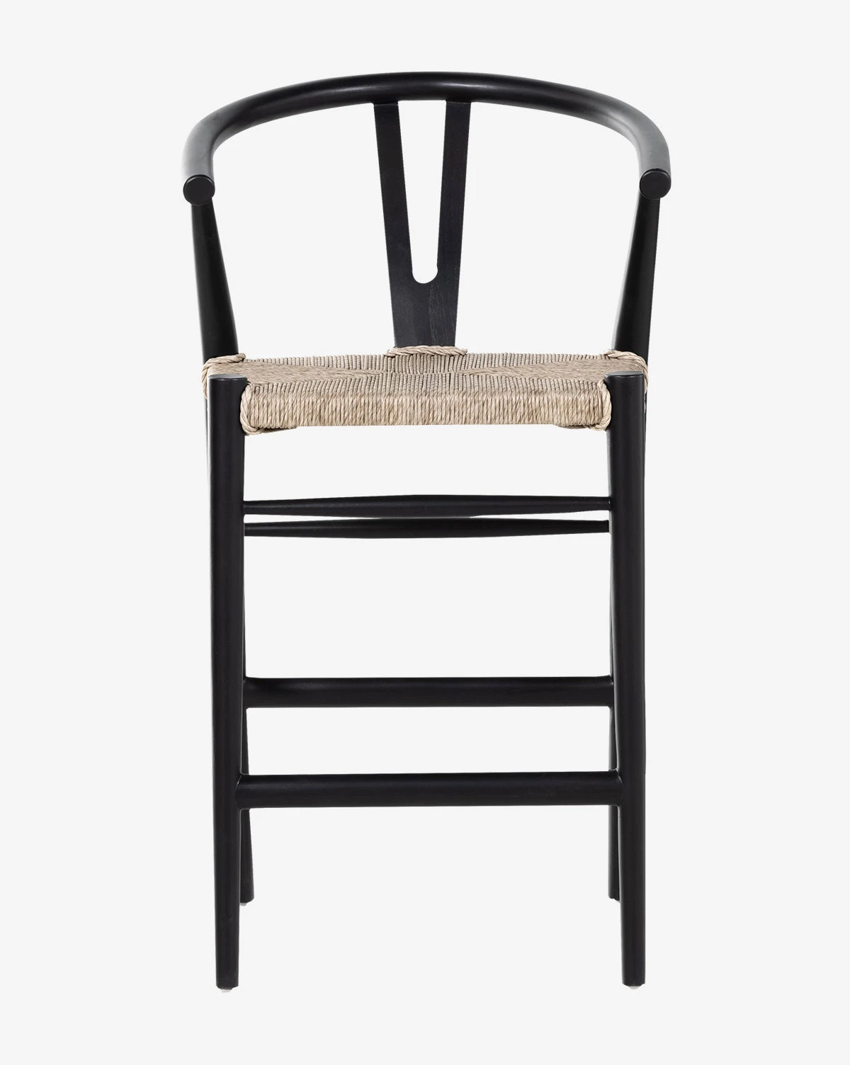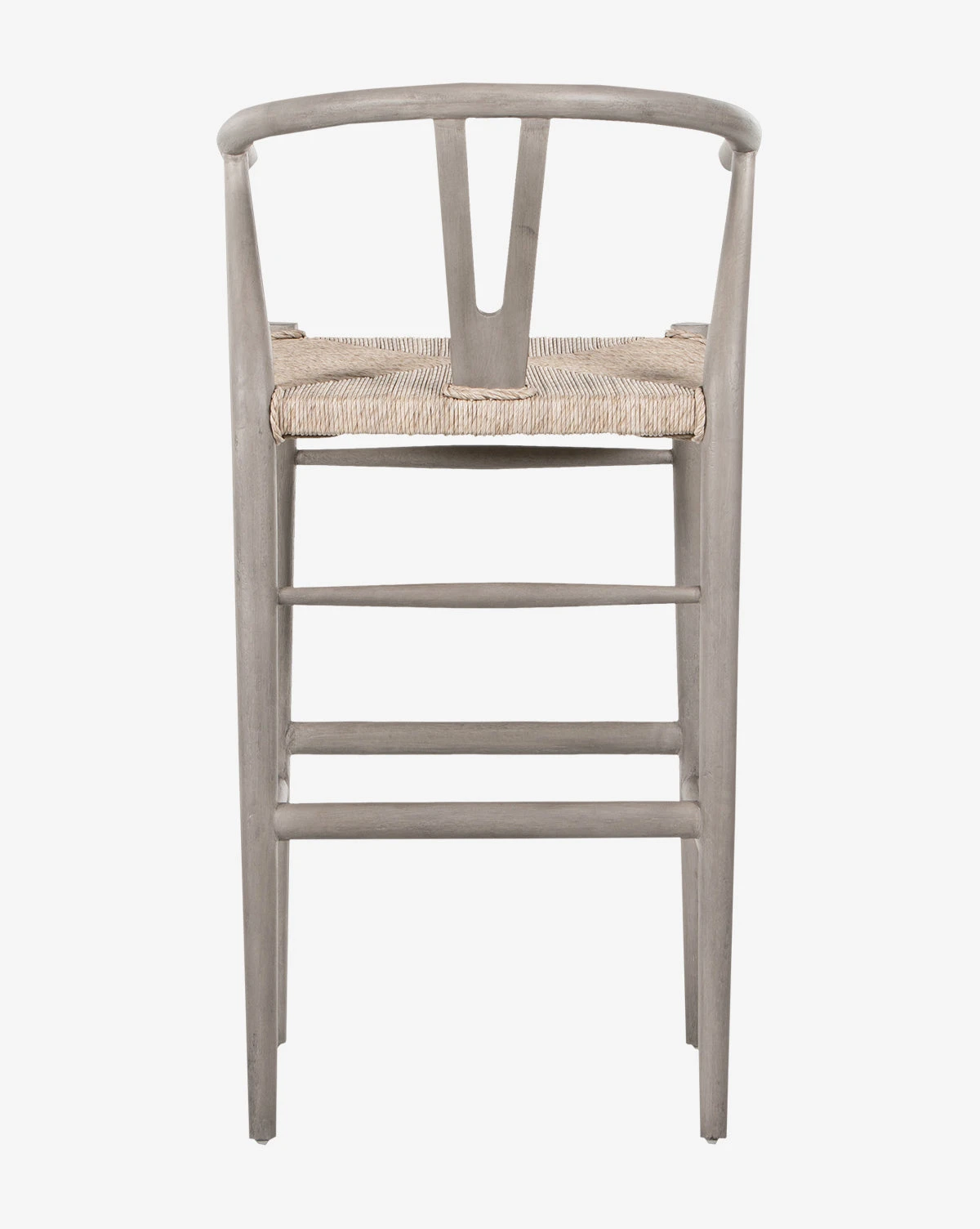With a wishbone style back and modern curves, the teak-framed Jasper Stool makes a statement wherever it’s placed. Horizontal bars bring visual dimension to its base, as a woven wicker seat adds refined texture, finishing off the design.