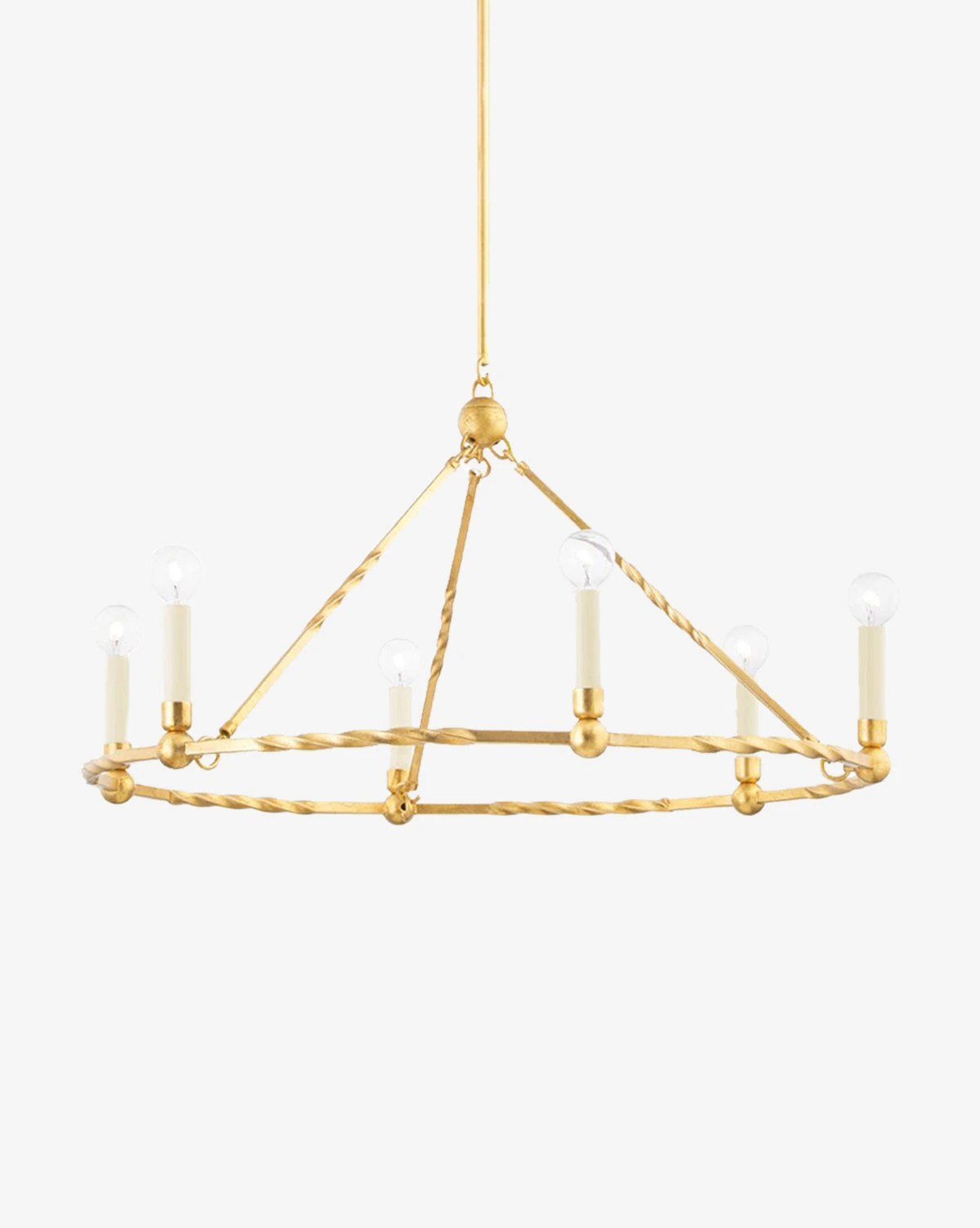 With simple yet beautiful candelabra bulbs that complement the curved detail on its frame, the Josephine Chandelier brings modern refinement to your decor. The vintage gold leaf finish on the chandelier makes an elegant statement in your space.