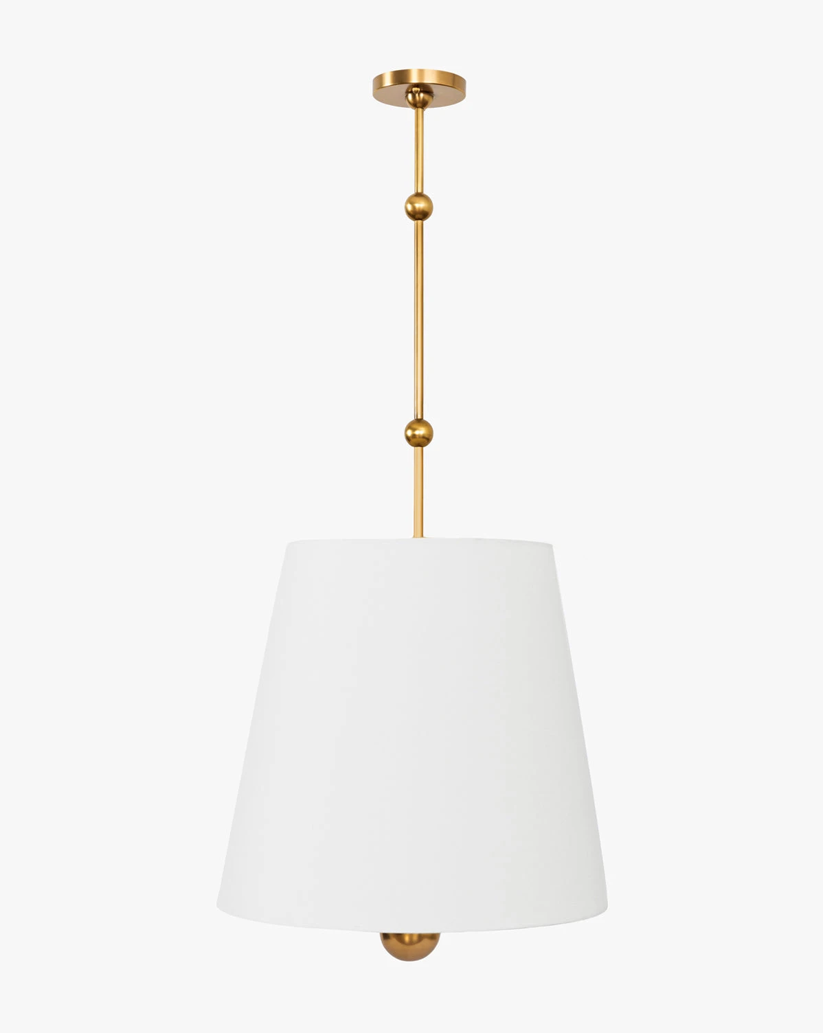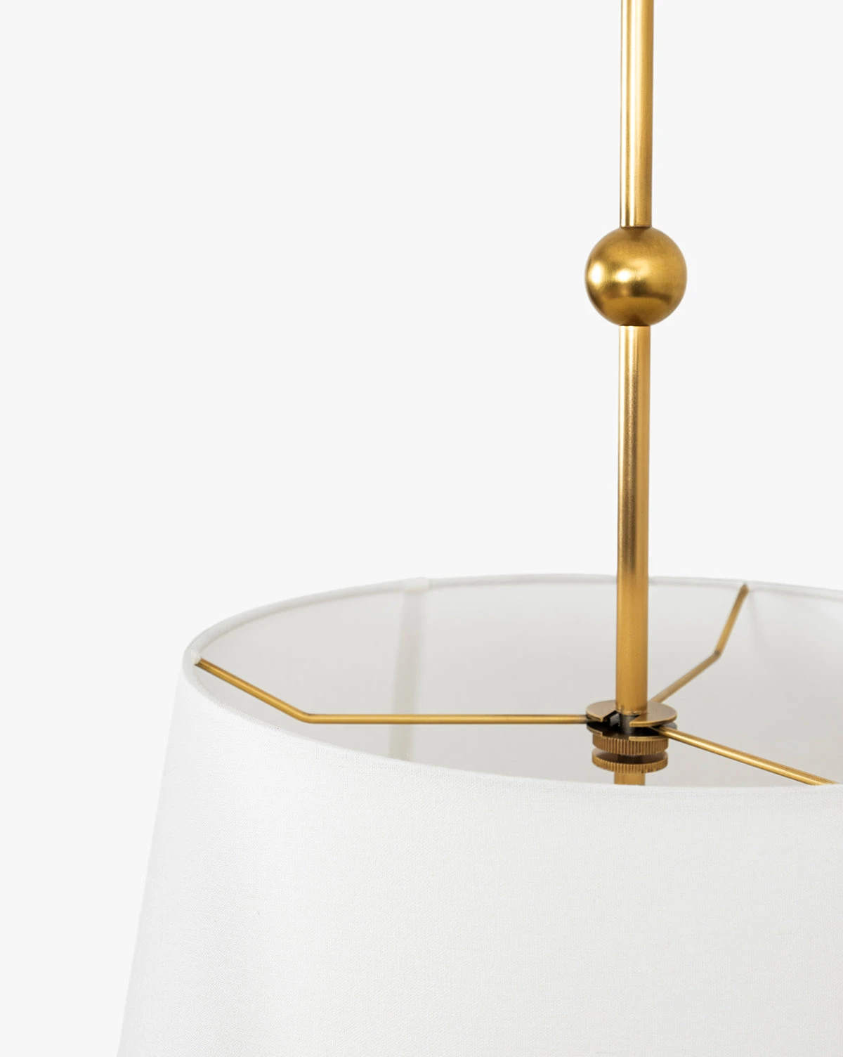 Designed with versatility in mind, our Kipling Pendant beautifully elevates both classic and contemporary spaces. The quality linen shade and antique brass body bring a sophisticated elegance, and the ball detail at connection points brings an element of modern charm.