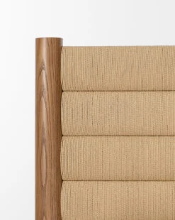 Natural materials create an organic feel throughout the oak bed frame of our Klaus Oak Bed. With head and foot boards featuring paper cord details, the rich color of the oak bed frame brings a warm and inviting presence to your bedroom decor.