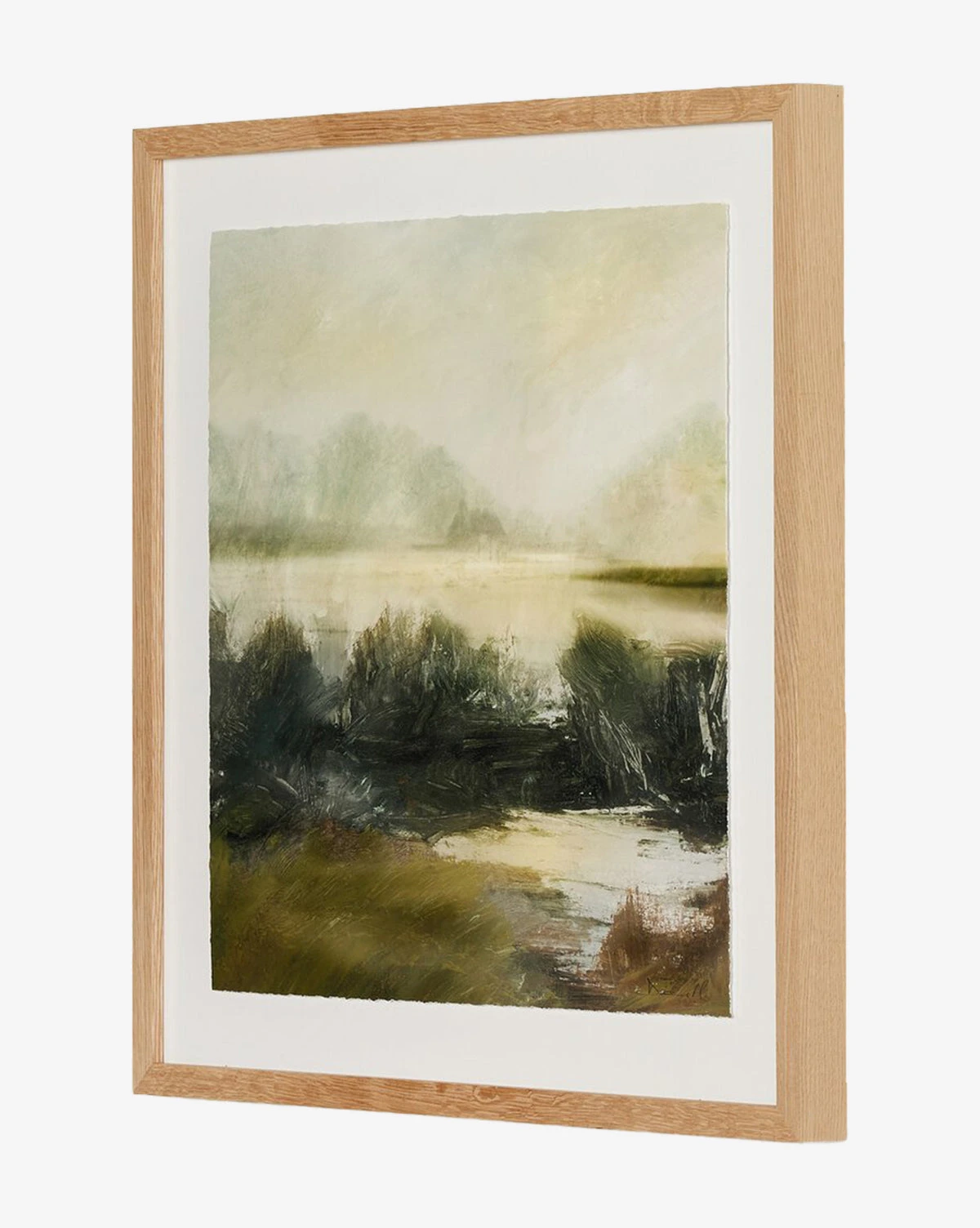 A calming lakeside scene comes to life with each detail in Lake House by Dan Hobday. A museum-quality piece presented on textured fine art paper, the expressive artwork tells a story wherever the piece rests. Â