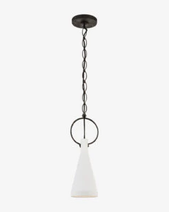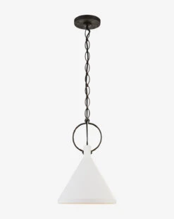 We were immediately attracted to the Limoges Pendant for its bold simplicity. Its strong conical shade is held by a large circular clasp that bring balance and subtle interplay with shaping into its design.