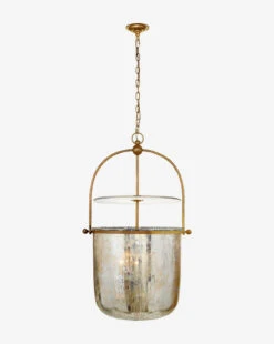 The Lorford Smoke Bell Lantern features the most unique and masterful use of mercury glass we’ve seen. Held by a structured, aged iron case, the glass brilliantly displays it enticing metal sheen when lit.