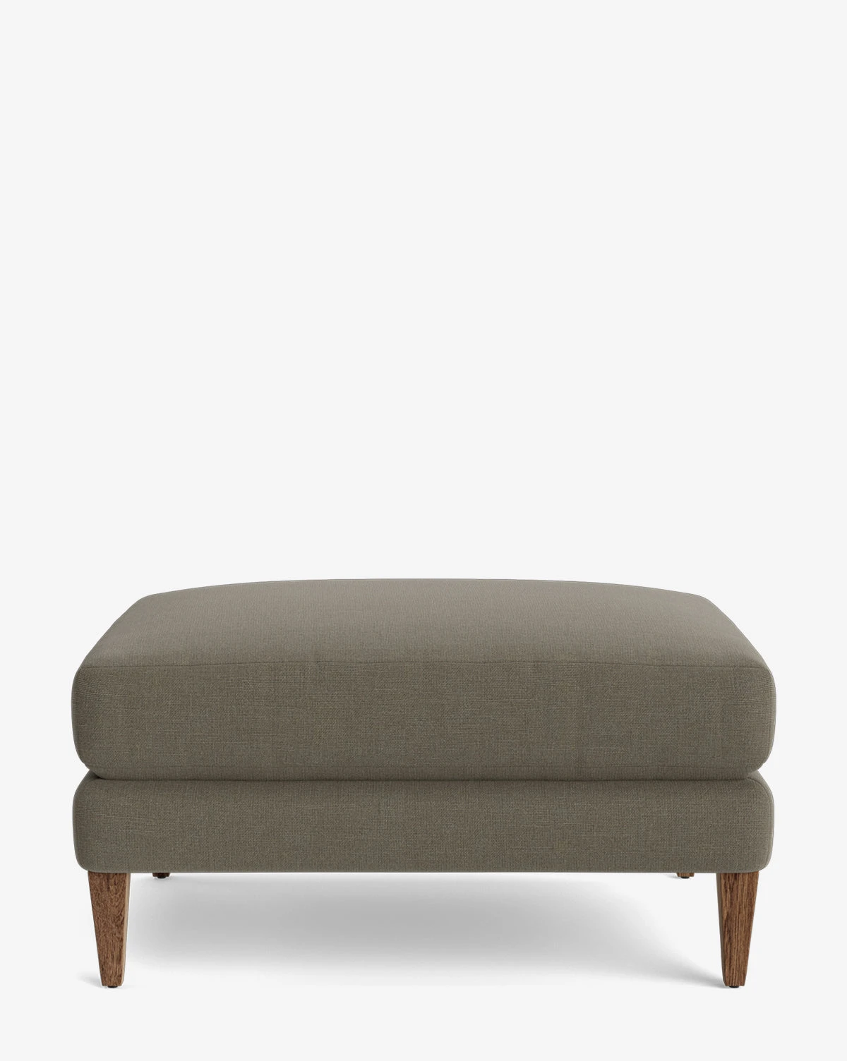 Our Lucille Ottoman is a modern approach to a traditional design. Crafted with luxurious comfort in mind, its classic format features a down wrapped cushion for a perfectly stuffed look and feel. A bench-made alder wood frame adds durability to the design, as four oak tapered legs give this ottoman a simple modern touch. Completely customizable in a wide array of fabrics, make the ottoman your own with either a soft linen or high performance crypton.