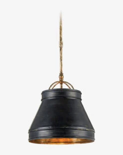 The Lumley Black Pendant strikes a balance between its simple structure and its bold materials. Made from iron with black and bronze finishes, the pendant makes a unique statement in lighting designs from the kitchen to the living room.