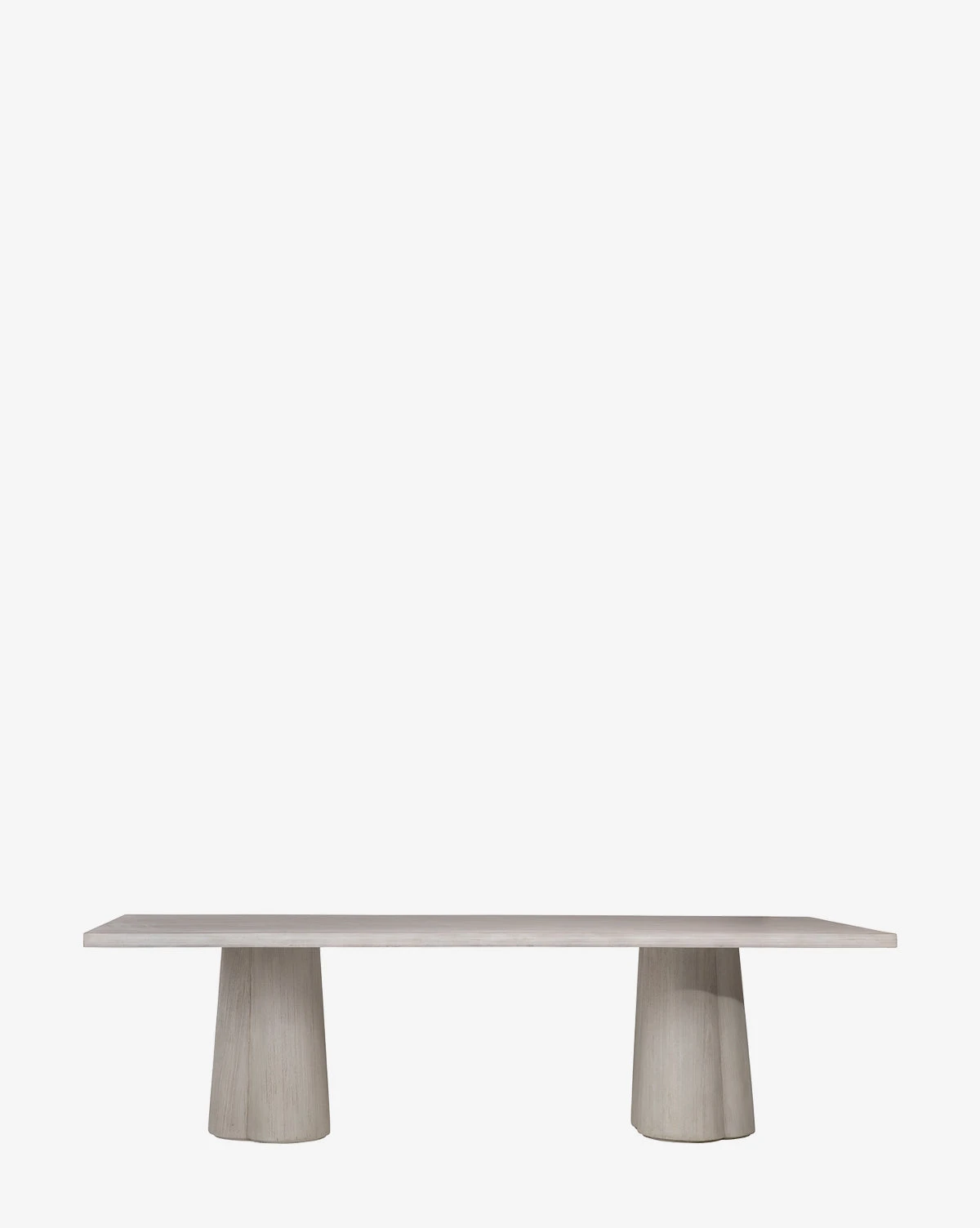 A perfect mix of elegance and simplicity, the Macon Dining Table makes a beautiful addition to your dining space. Made from acacia wood in a white finish and featuring sculptural bases, the table adds subtle dimension to your home.
