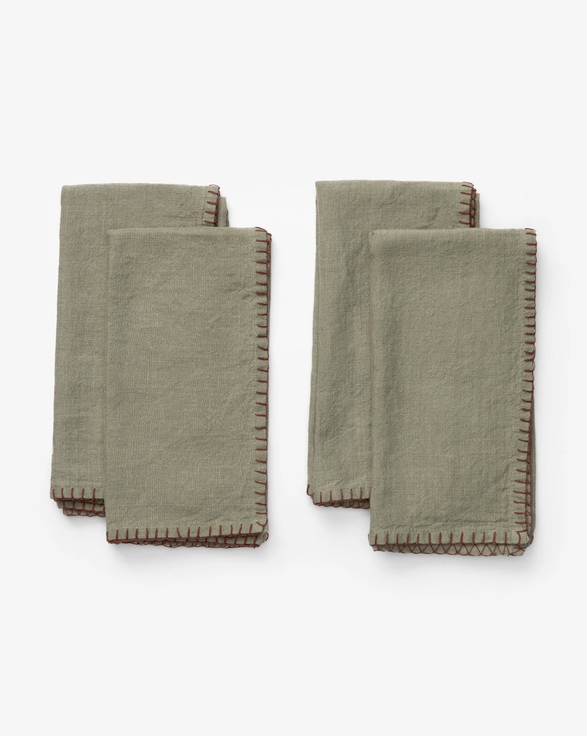 Classic and colorful, the Maggie Linen Napkins are made from 100% linen. Their simple design makes for easy tabletop styling, while their embroidered whipstick border adds subtle detail. Soft and enduring, the linen napkins are a timeless asset to your dining room.