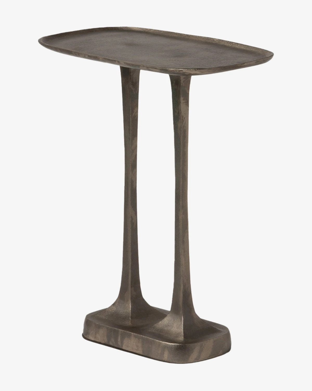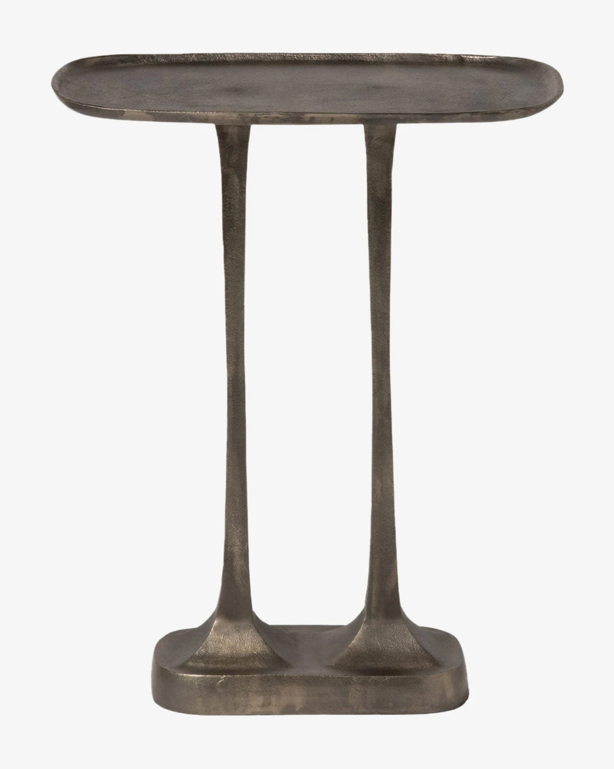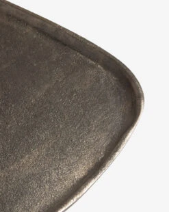 In a unique design, the Manzo Accent Table makes a statement with its stunning textured metal construction. With an antiqued silver finish, this table has a crafted yet industrial feel featuring two sleek legs and a tray top.