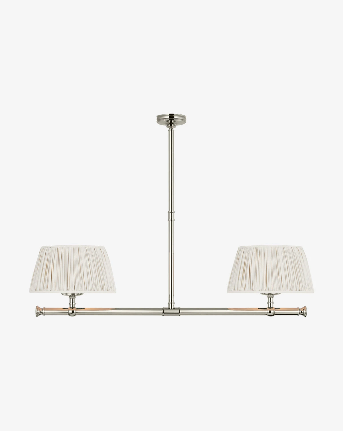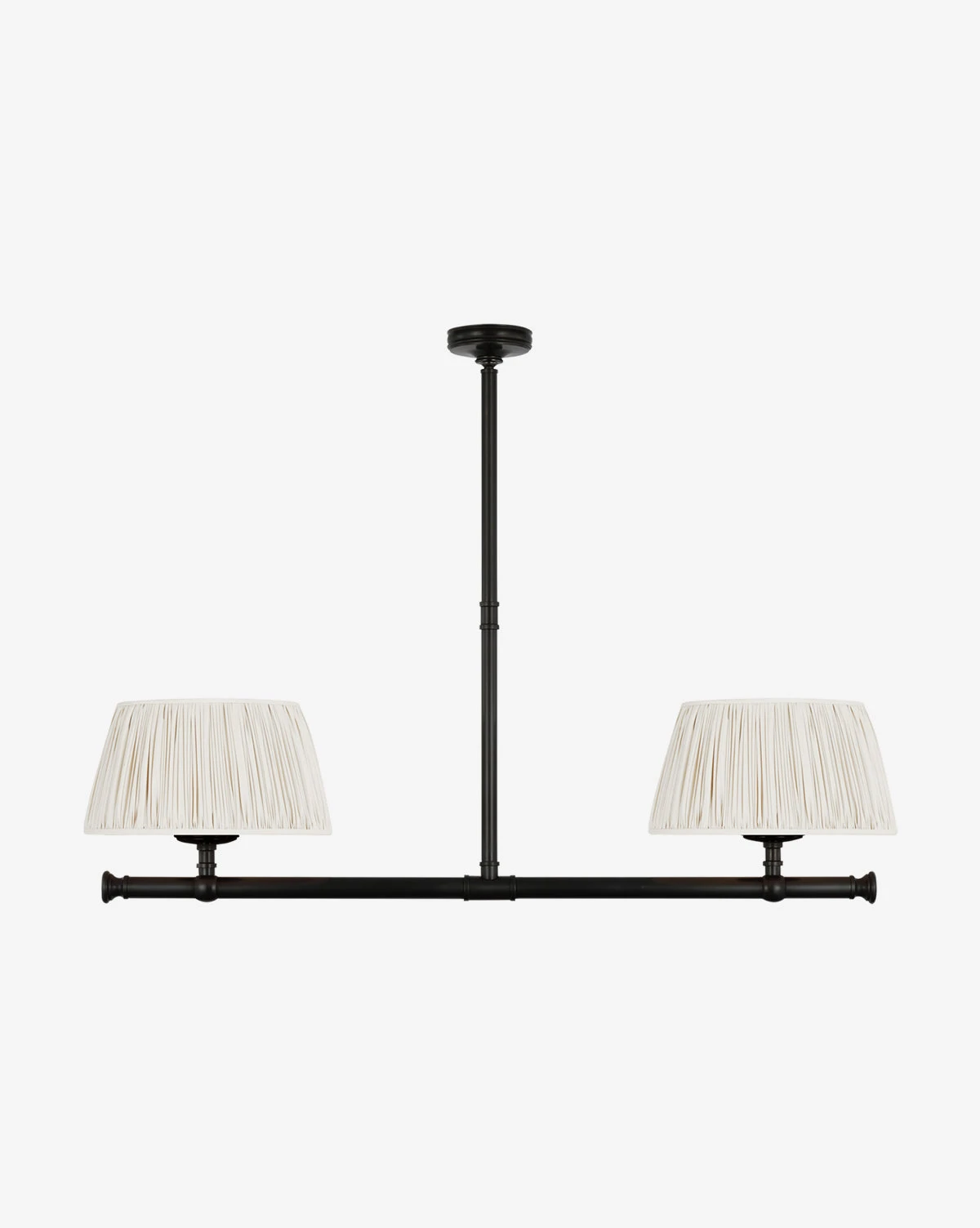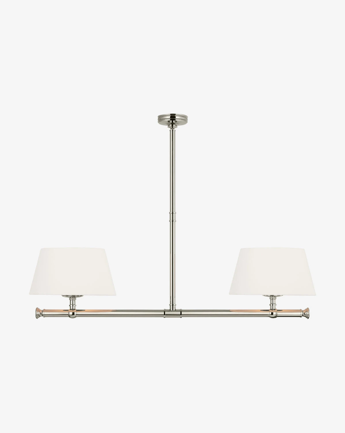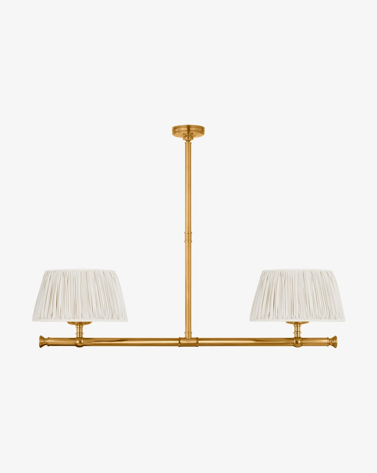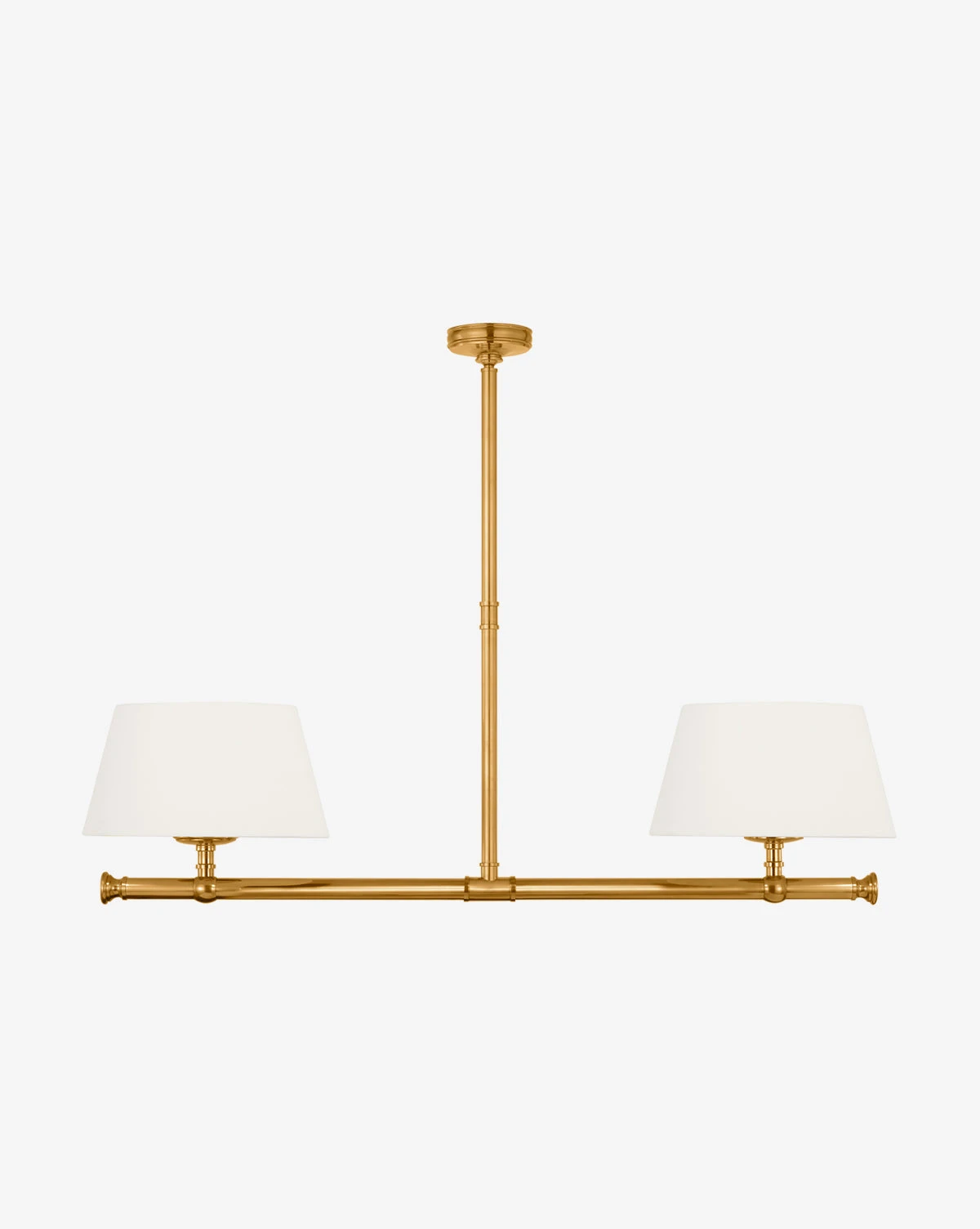 Elegant and geometric, the Marion Linear Chandelier boasts thoughtful craftsmanship with its subtle details. The sleek structure is available in your choice of finish to complement the simple linen shades. Â