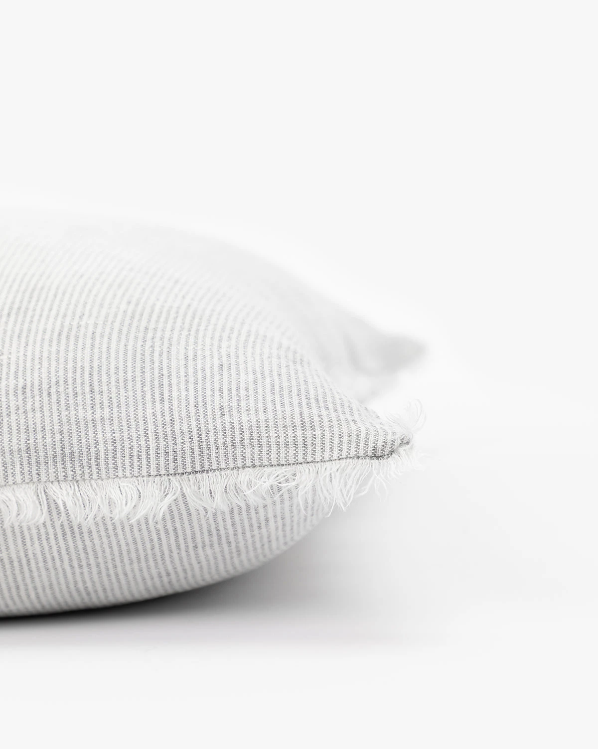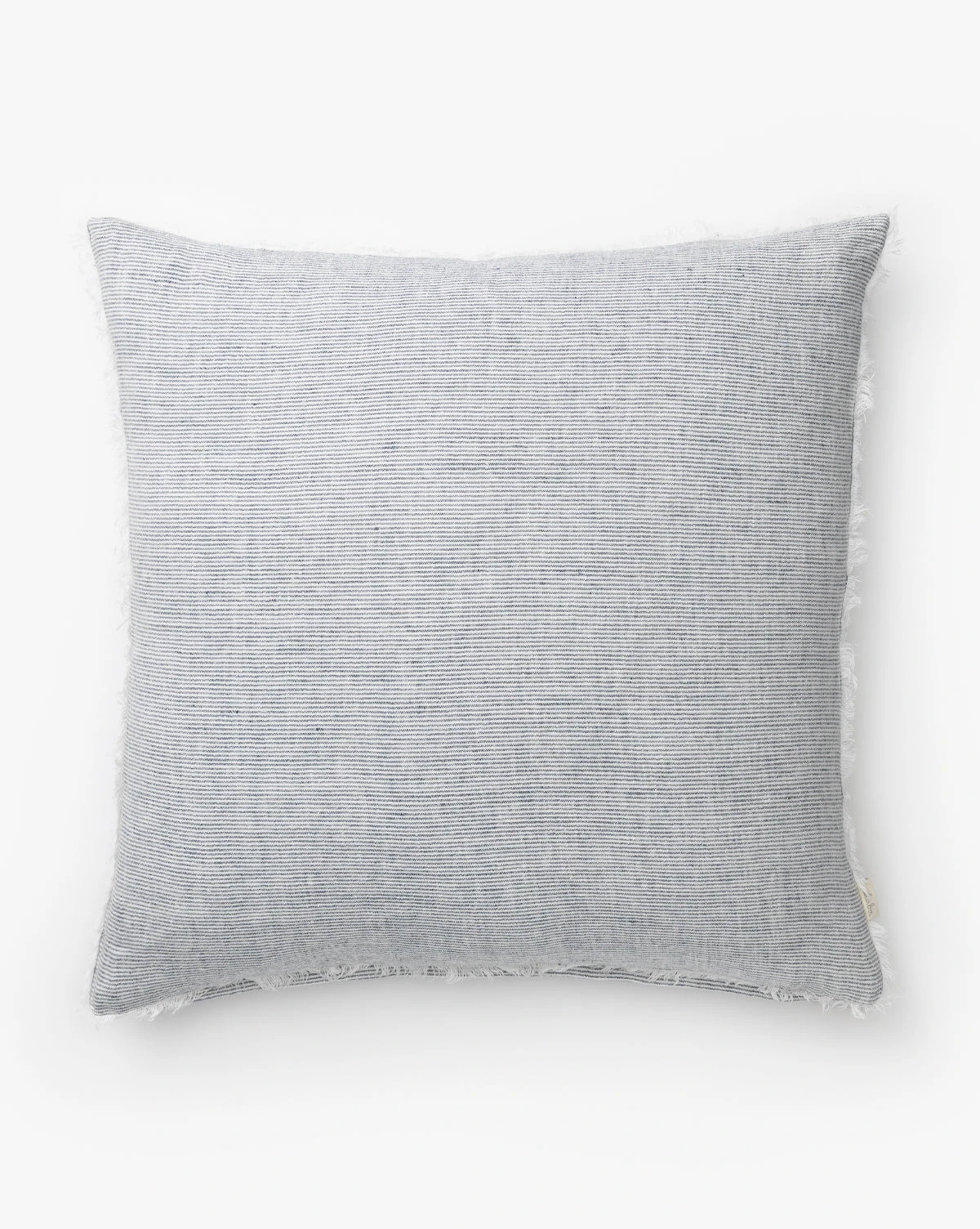 Made from 100% linen, the McCallen Pillow is full of subtle texture and depth – perfect for layering with your pillow collection. A sophisticated fringe edge lends added textural interest to the gray or navy striped pillow.