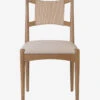 With a solid parawood frame and a boucle performance fabric upholstered seat, the Medina Dining Chair thoughtfully mixes materials. The light fabric and warm wood legs bring a simple palette to the dining room through the modern design.