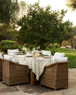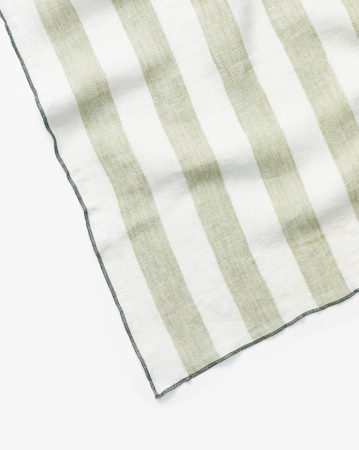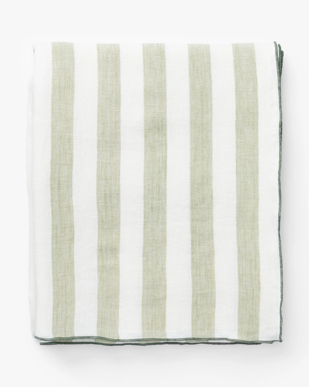 Timeless and playful, the Melrose Striped Tablecloth features a green and ivory palette. Its 100% linen material is soft and elegant, but with a weighty presence that elevates table settings almost effortlessly. A piped edge complements this handwoven tablecloth.