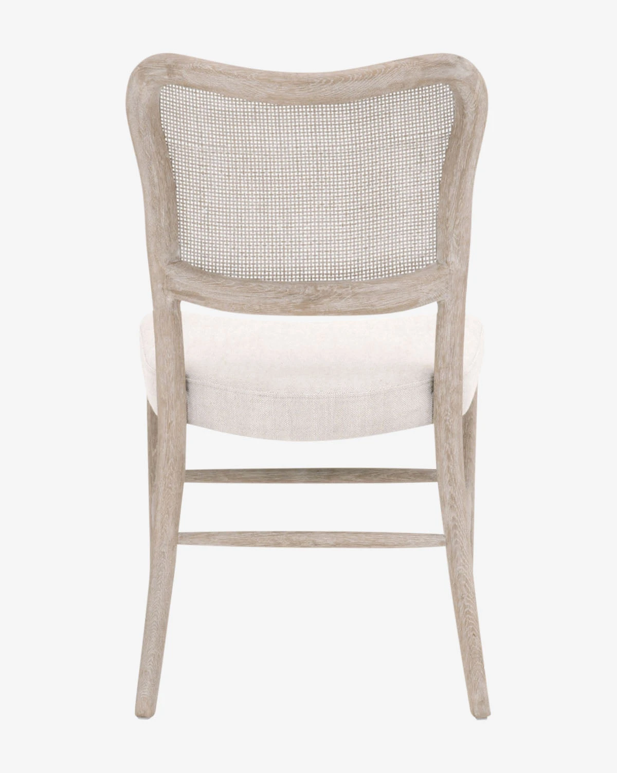 With smooth curves and sophisticated cane backing, the Miranda Chair evokes a vintage feel placed around your dining room table. Crafted from white oak for durability, its light finish and fabric-covered cushion complete the old-world inspired design.