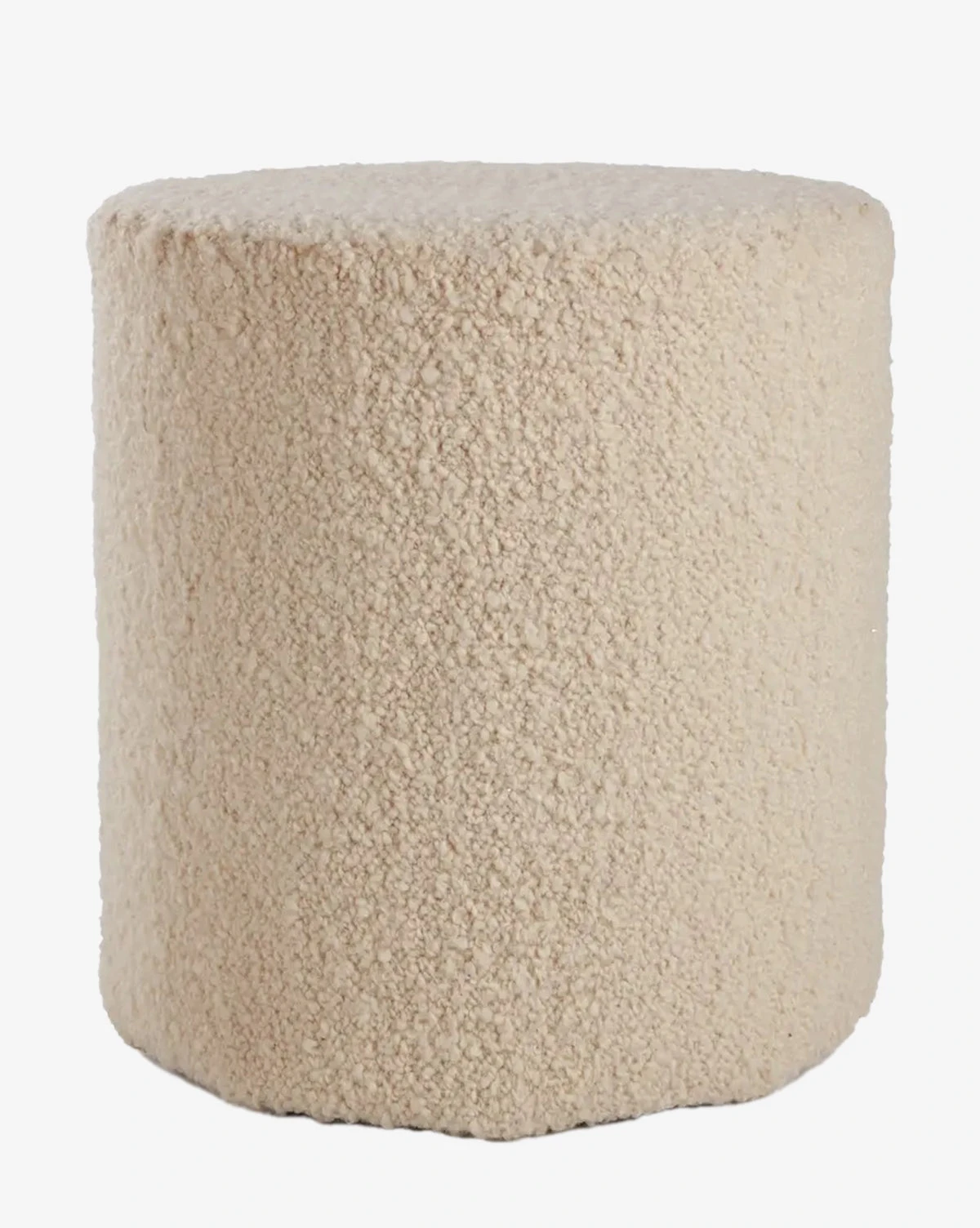 The Mylah Wool Stool, with its inviting and on-trend shearling look, is a playful and unique accent piece for any corner of the living room or bedroom. Made of wool, this stool has boucle details that add a touch of whimsy to your designs. With either a solid cream or duo-tone cream and brown colorway, the Mylah Woold Stool pairs effortlessly with modern decor.