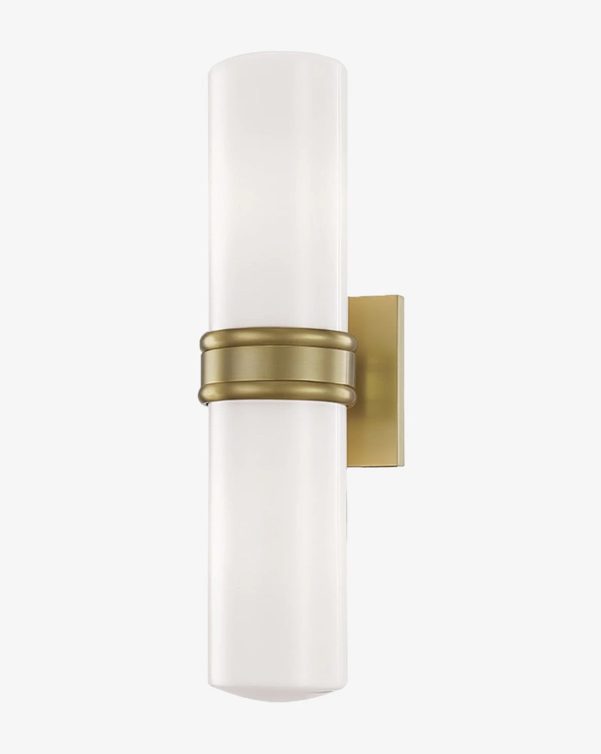 Featuring a smooth, cylindrical shape, the Natalie Sconce lends modern accent lighting wherever it’s placed. Whether framing your favorite art or placed alongside your bathroom mirror, use its straightforward form and brass or nickel band to brighten up your space.