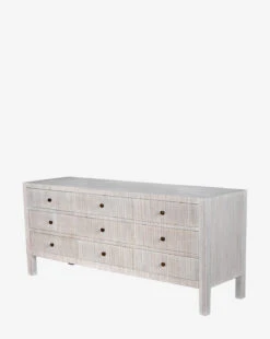 With an airy presence, the Aldea 9 Drawer Dresser is all about the details, from the delicately hand-carved reeding to the brass knobs. The white wash finish subtly reveals the golden wood tone of mahogany beneath it, lending both beauty and function to your space.
