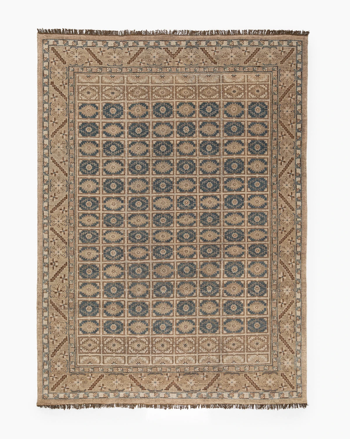 Hand-knotted with rich green and blue tones, our Nunez Hand-Knotted Wool Rug is timeless and refined. Made with 100% wool, the rug anchors any room while remaining durable for years to come. Its beautiful motif features a classic border and intricate details.