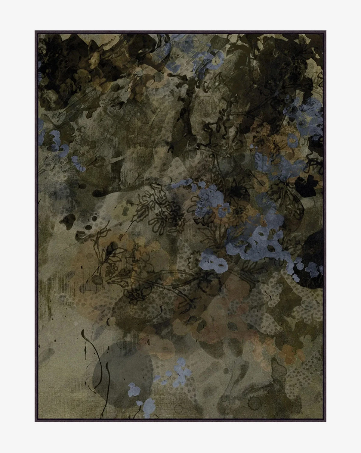 Elegant and contemplative, Olive Grove is a work of abstract with layers of detail that bring depth and intrigue to your home styling. The artist-enhanced giclee on canvas is gallery wrapped and set in a frame with an espresso finish, showcasing exceptional craftsmanship and high-quality materials. With deep rich tones and a sophisticated yet moody essence, this piece creates a captivating focal point that enhances any space.Â