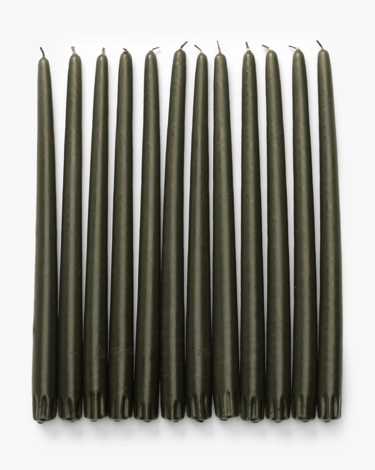 Hand-dipped in an olive tone, the Olive Taper Candles are a cozy addition to styling. Made with the best ingredients, the taper candles layer elegantly with your console or tabletop vignettes. Â Â