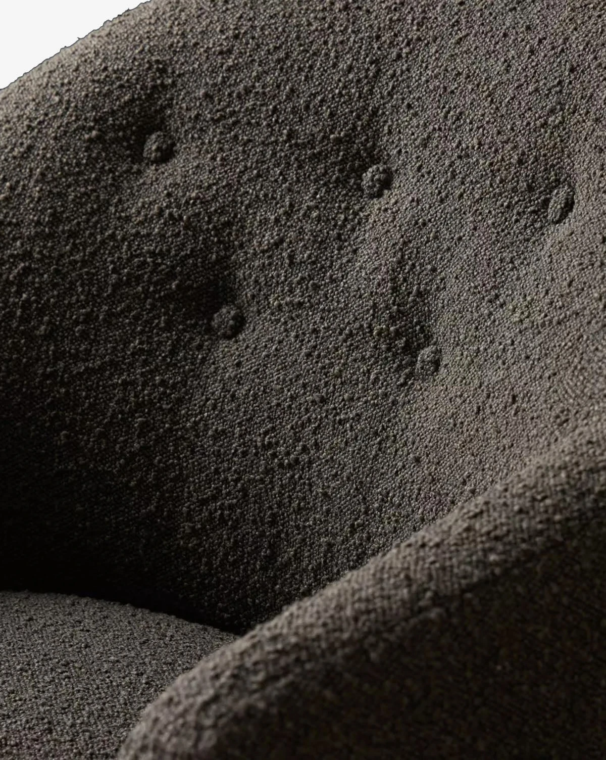 The Olivette Chair reimagines a traditional design with subtly modern details. Crafted to bring a luxurious feel to your space, its seat is upholstered in either a sand or mink boucle-like fabric and complemented by dark wood legs.
