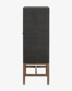 Featuring woven black raffia and antique brass hardware, the Osborne Cabinet brings texture and a touch of charm to home styling. Its streamlined silhouette is supported by an open base crafted with solid mahogany, creating a sense of effortless refinement.