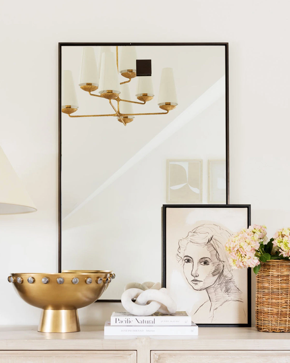 With brass and black finish options and a unique floating square shape, this mirror is exciting and easy going.