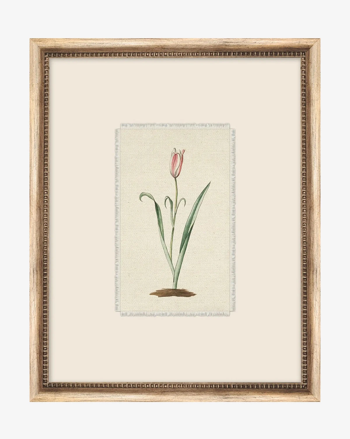 With a nod to classic illustration and a lively yet refined color palette, Petite Floral I will bring a welcoming refresh to home styling. A giclee print on raw canvas with frayed edges, this piece is mounted on mat and set within a vintage-inspired wood frame with a silver finish.Â