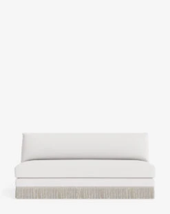 Inviting and modern, our Philippa Settee 68″ welcomes rest while seamlessly lending a playful feel to the home with its fringe border. With your choice of designer fabric upholstered over luxurious cushions, the settee makes a statement anywhere it is styled.