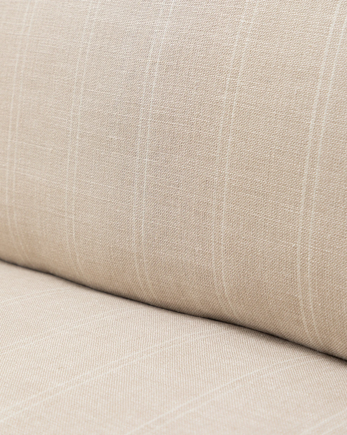 Inviting and modern, our Philippa Settee welcomes rest while seamlessly lending a playful feel to the home with its stripes and fringe. With an oatmeal and ivory striped coated linen upholstered over luxurious cushions, the settee makes a statement anywhere it is styled.
